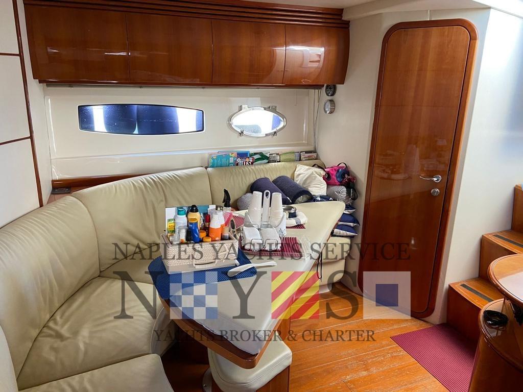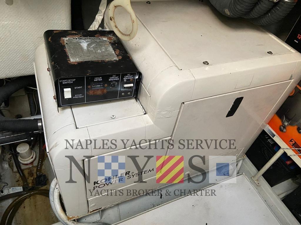 Alarme moteur, Alarme de pompe de cale, Flaps hydrauliques, Lavabo dans le cockpit, Éclairage de courtoisie, Passerelle, Pompe de cale automatique, Cockpit en teck, Prise de quai, Onduleur, Guindeau électrique, table de cockpit, Table pliante de salon, Filières avec sortie latèrale, Corne.