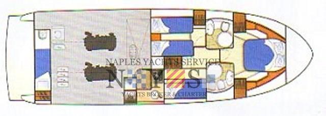 Alarme moteur, Alarme de pompe de cale, Eau sous pression, Double barre à roue, Flaps hydrauliques (N°2), Éclairage de courtoisie, Passerelle (Besenzoni Colore BIANCO), Plateforme arrière, Pompe de cale automatique, Prise de quai, Onduleur, Guindeau électrique, Echelle de bain.