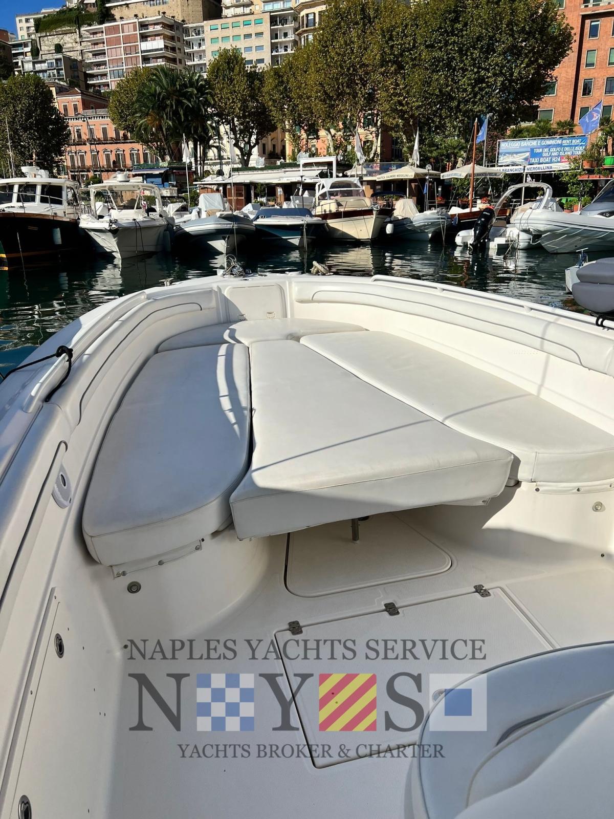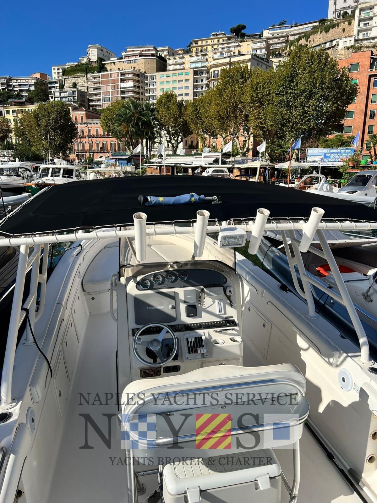 Alarme moteur, Ancre (Danforth), Eau sous pression, 4 Batteries, Phares fixes arrière, Flaps électriques, Indicateurs de flaps, 4 Éclairage de courtoisie, Pompe de cale automatique, Prise de quai, Onduleur, Guindeau électrique, Echelle de bain, Corne, T-Top.