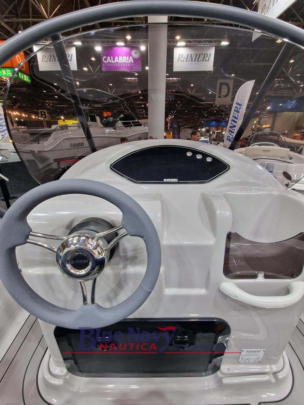 Équipement standard : Pompe de cale ; Feux de navigation ; Direction mécanique ; Série Main courante ; 4 bollards d’amarrage rétractables ; Échelle; Bain de soleil à l’avant ; Coque blanche ; Sellerie extérieure ; Porte-objet.