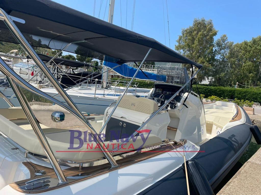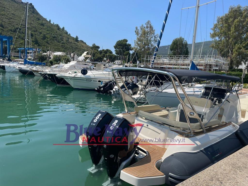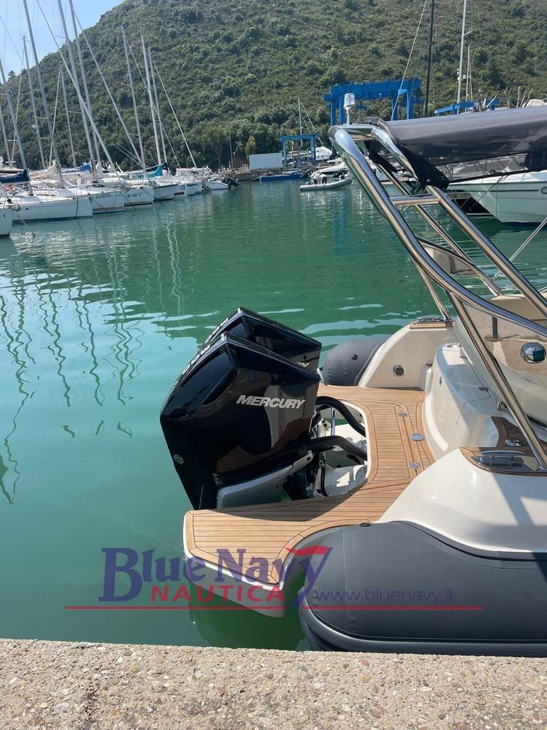 Dauphin d’étrave, Ancre électrique complète avec chaîne 50 mt, Kit d’ancrage en acier inoxydable 316 10 Kg, Casiers avant et solarium, Coussins fermés complets, Console complète, Siège avant de la console, Tabouret de console en teck, Dossier arrière, Table arrière / Terrasse arrière, Casier au sol pour ranger la table, Plate-forme arrière, Crochets de remorquage et d’amarrage, Réservoir d’eau, Indicateur de niveau d’eau claire, Douche arrière complète avec système, Évier en acier inoxydable, Réservoir d’eau noire complet 41 L, Indicateur de niveau d’eau noire, Réservoir de carburant en acier inoxydable, Ventilateur, Support en aluminium peint, Pompe de cale automatique, Panneau électrique, Système électrique complet, Déconnexion de la batterie et système de distribution de charge 3 batteries, Prise USB dans console, Boussole, Réfrigérateur électrique, Gonfleur électrique, Échelle, Kit de réparation