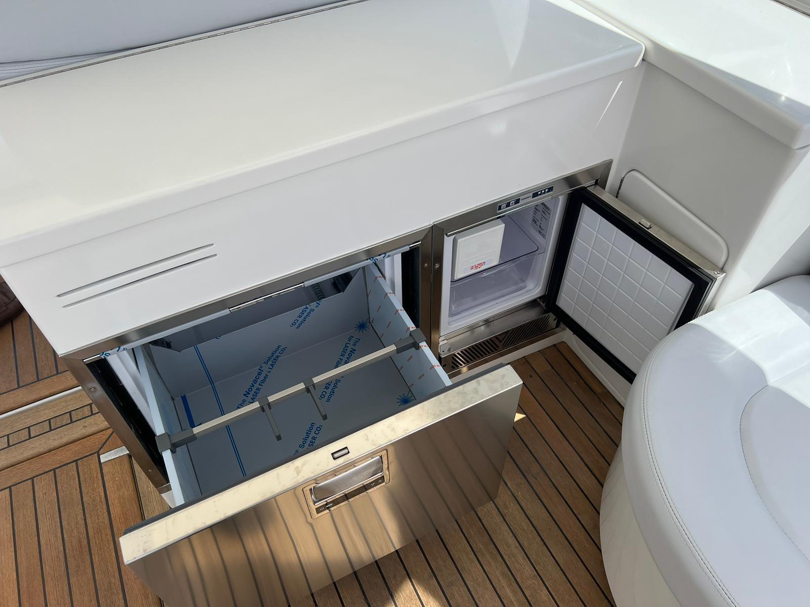 Alarme moteur, Alarme de pompe de cale, Eau sous pression, Hard top, Lavage de chaine, Cockpit en teck, Prise de quai, Onduleur, Guindeau électrique, Echelle de bain, Winch électrique arrière.