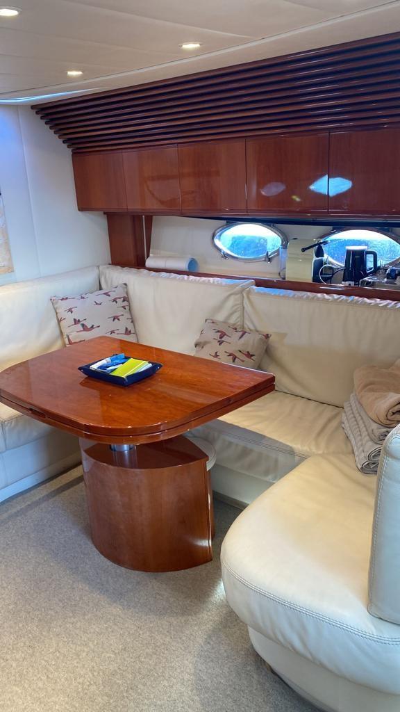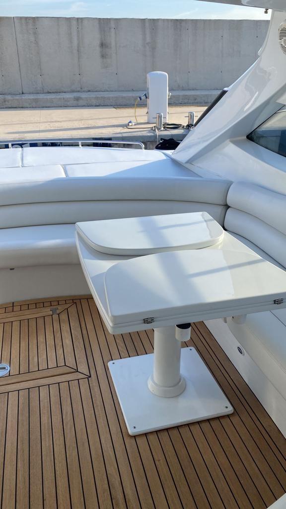 Bateau révisé avec chaîne fabriquée et prêt à flotter. Climatisation dans le cockpit et coussins extérieurs avec nouveaux auvents 2022. Polissage total. Coque argentée. 2024 Remplacement du teck sur la plate-forme de bain et remplacement de tous les tubes et bottes sur les transmissions