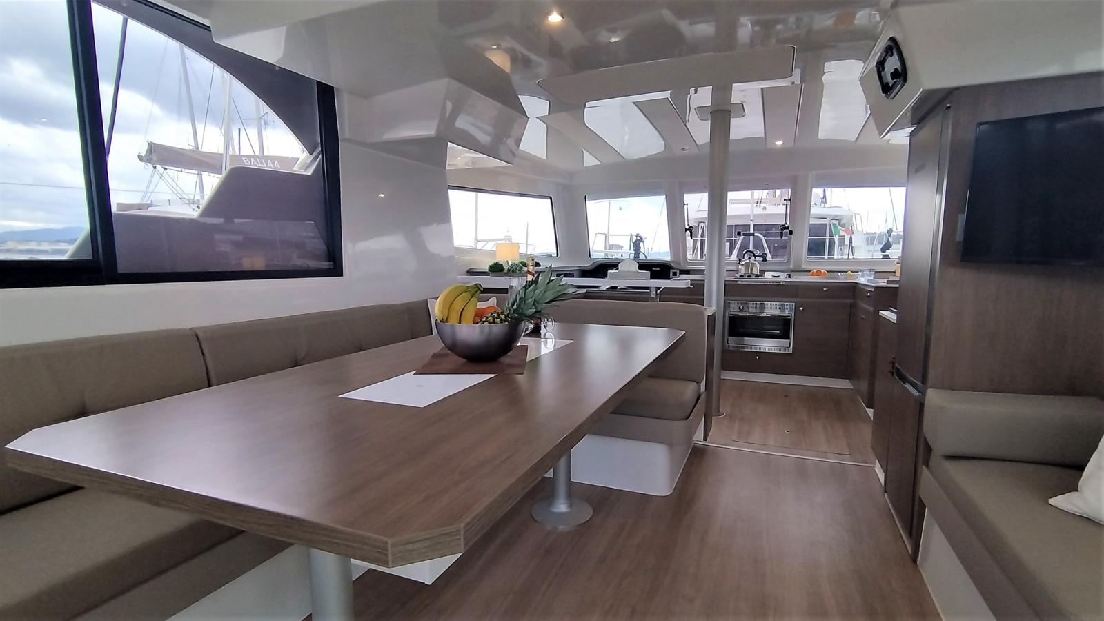 BBQ/ Grill, Ballon d'eau chaude, Gradateur de lumière, Dessalinisateur, Cuve à eaux noires, Plancher intérieur en bois, Prises interieures 12v, Prises interieures 220v, Réservoir d'eau noire, Toilettes électriques.