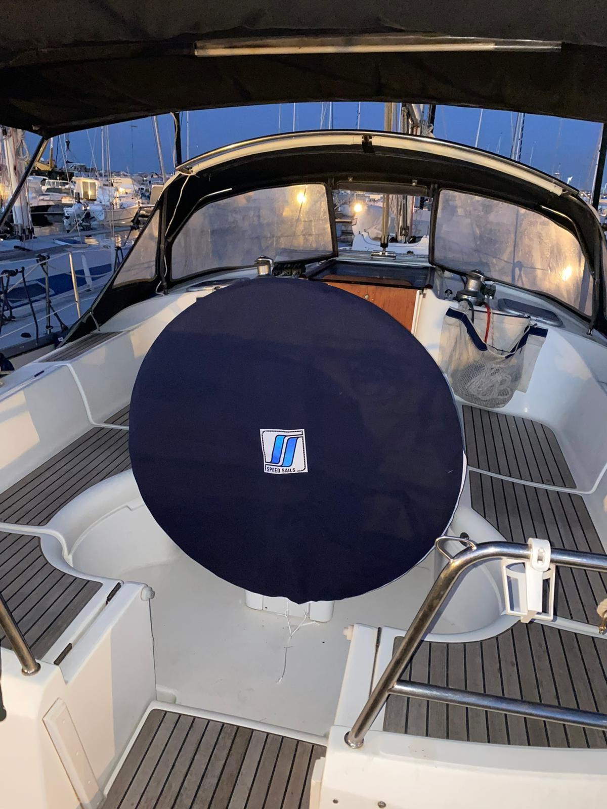 Ligne d'arbre de rechange, Eau sous pression, remorque, Douche de cockpit, Panneau solaire, Passerelle, Pompe de cale manuelle, Prise de quai, Guindeau électrique, Echelle de bain, Chaise support HB, table de cockpit, Windex.