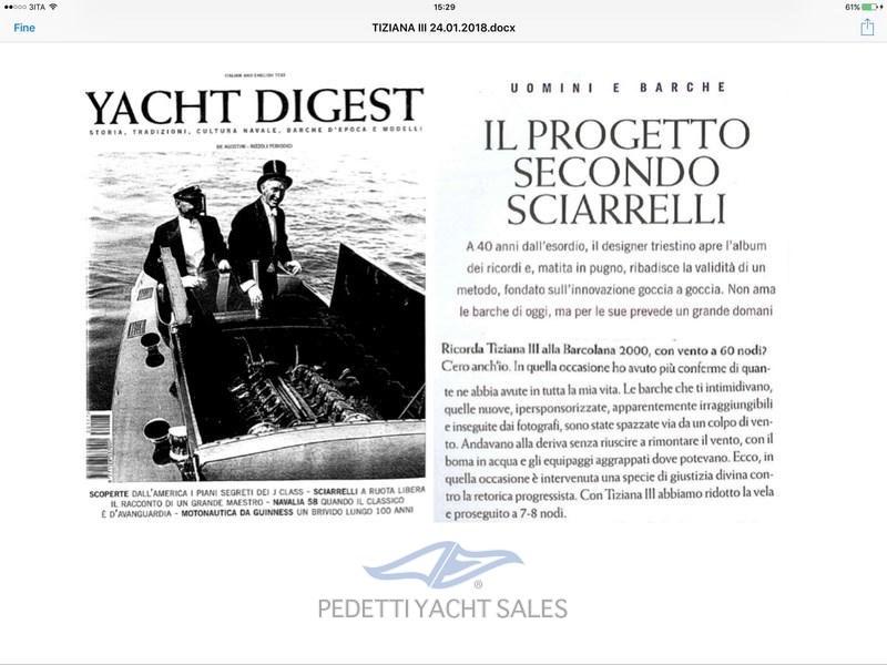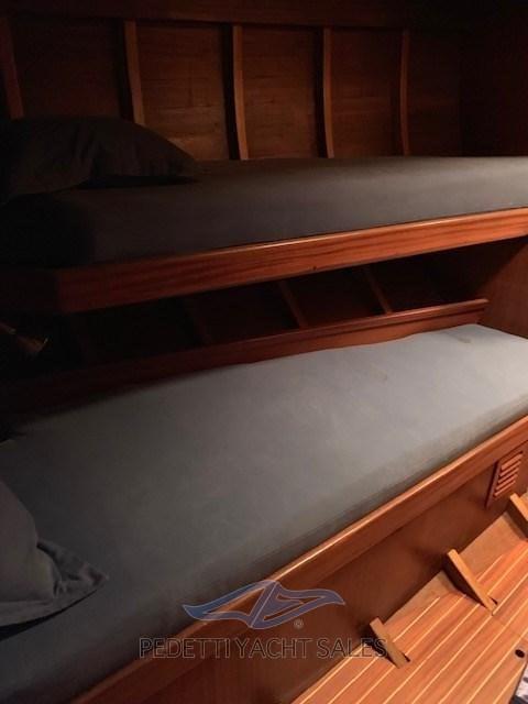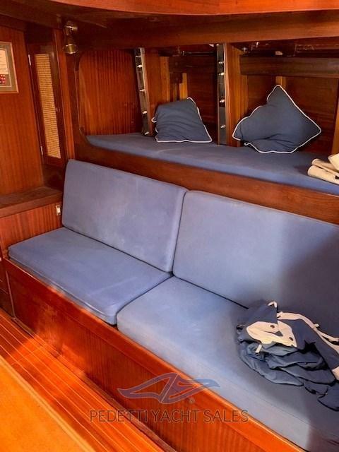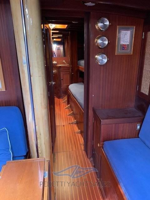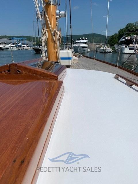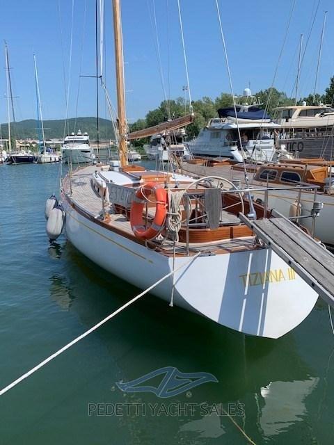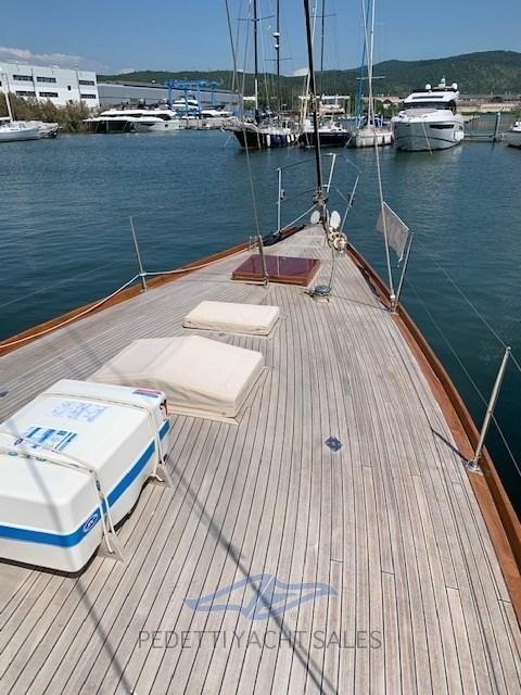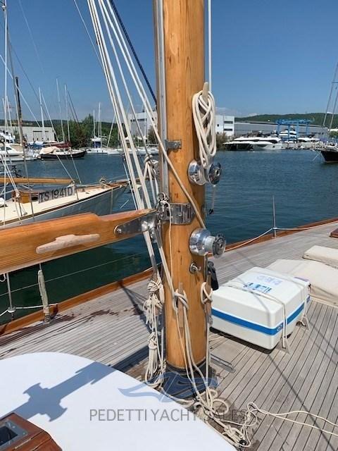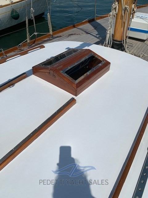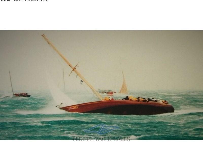 Il s’agit d’un voilier classique de 47 » (m. 14.19) entièrement en bois et avec coque laminée en acajou, projet 119 par Carlo Sciarrelli.L’armure est cutter avec une surface de navigation de 150 mètres carrés, 12 tonnes, 2,20 m. tirant d’eau et castor maximum de 3,96 m, hauteur de tête d’arbre de 17.00.It a 3 cabines doubles avec 2 salles de bains, y compris une douche interne dans la salle de bains de la cabine du propriétaire, pour un total de 9 lits dont 3 sièges supplémentaires disponibles dans les filets.