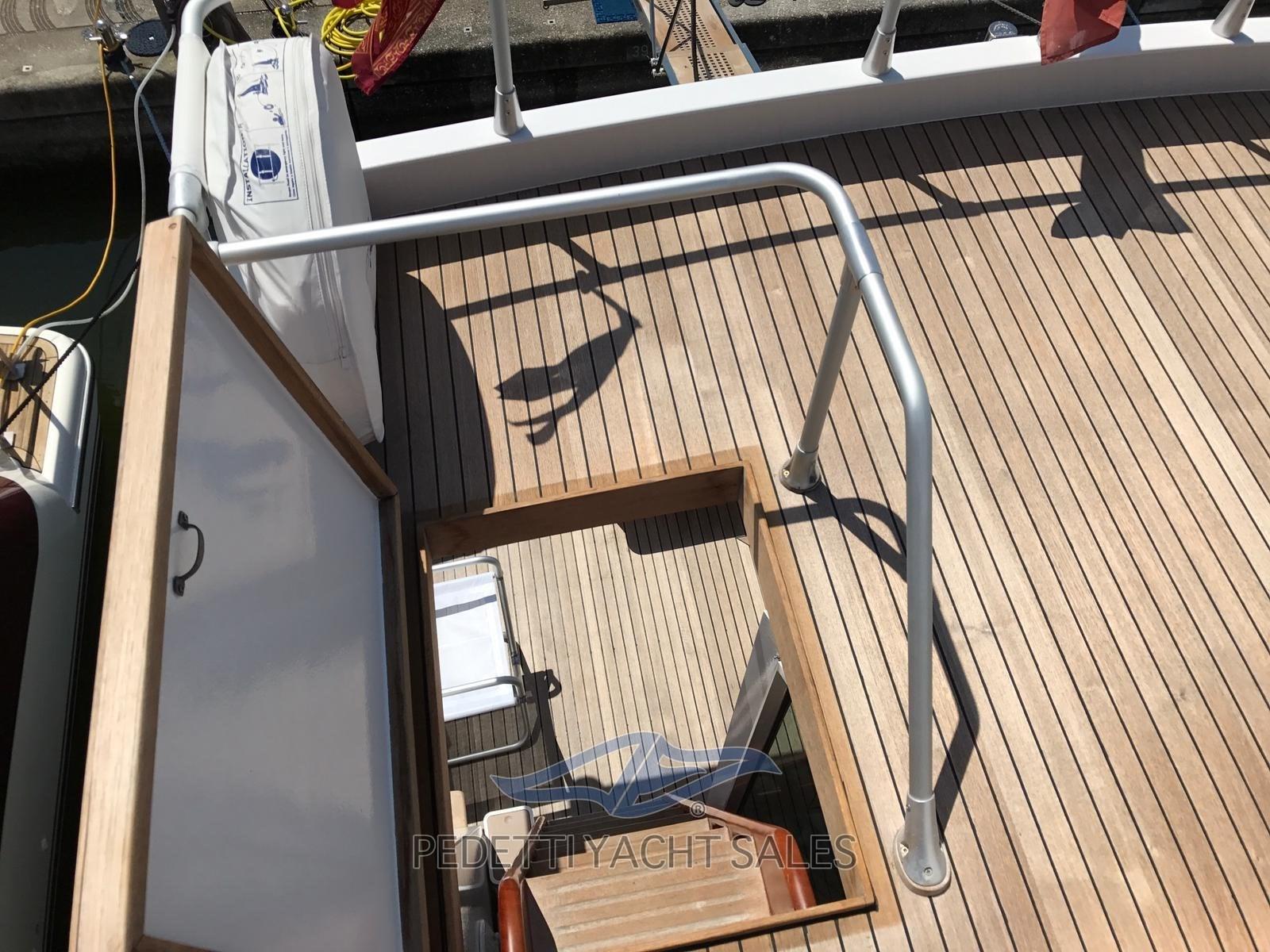 Passavant en teck, Douche de cockpit, Pompe de cale manuelle, Cockpit en teck, Guindeau électrique, Echelle de bain.