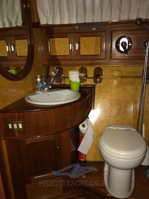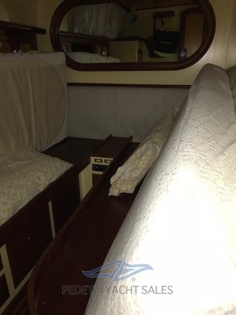 Alarme gaz, Alarme moteur, Alarme de pompe de cale, Eau sous pression, Passavant en teck, Douche de cockpit, Double barre à roue, Flaps électriques, Indicateurs de flaps, Passerelle, Pompe de cale manuelle, Porte latérale, Cockpit en teck, Prise de quai, Onduleur, Répétiteur électronique, Guindeau électrique, Echelle de bain, table de cockpit, Annexe, Corne.