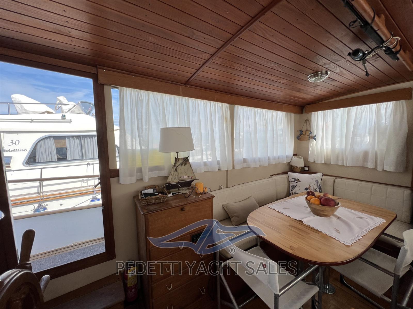 Alarme moteur, Alarme de pompe de cale, Eau sous pression, Passavant en teck, Douche de cockpit, Double barre à roue, Extincteur(s) fixe(s), Passerelle, Plateforme arrière, Pompe de cale automatique, Pompe de cale manuelle, Porte latérale, Cockpit en teck, Prise de quai, Guindeau électrique, Echelle de bain, table de cockpit.