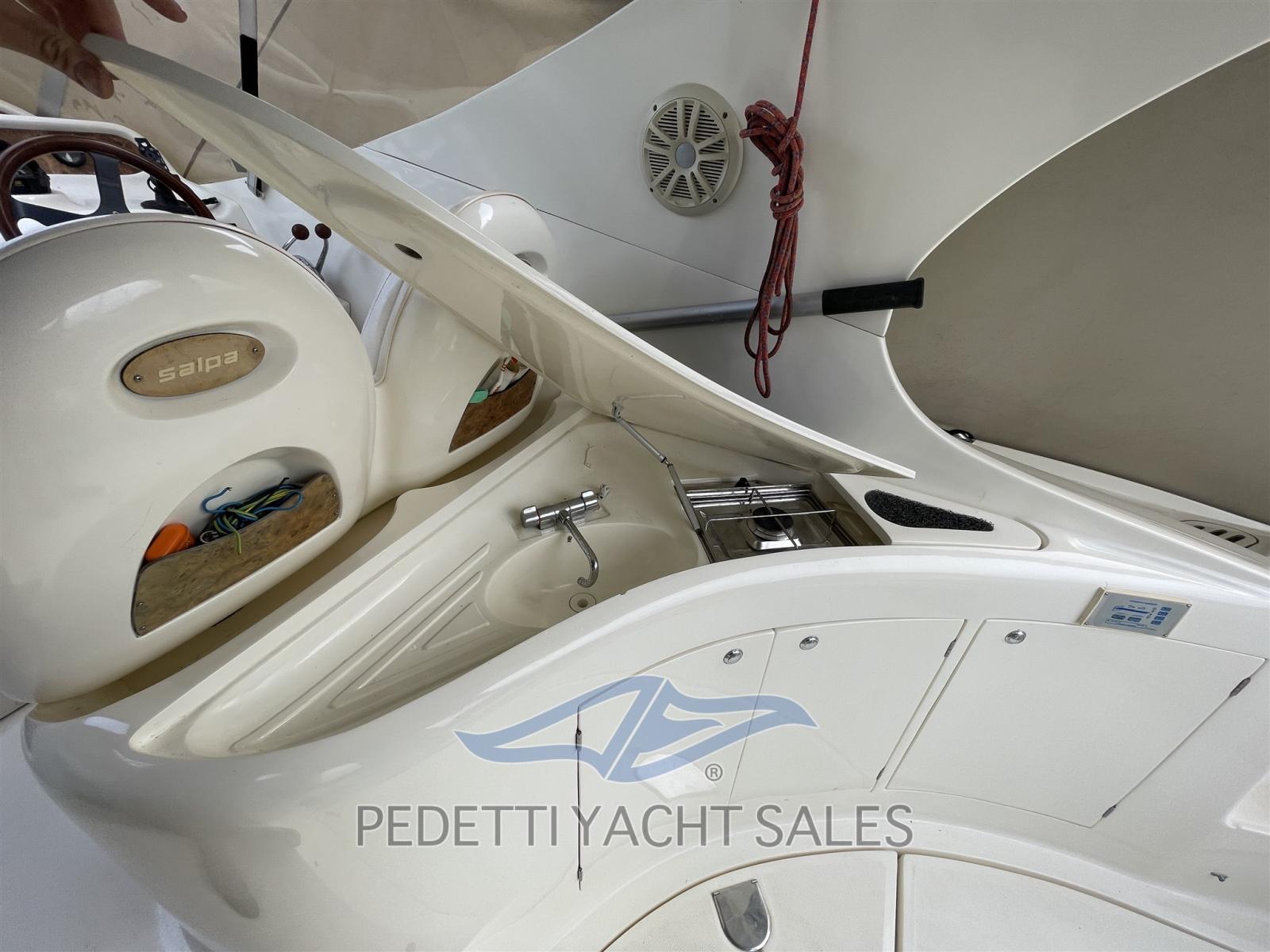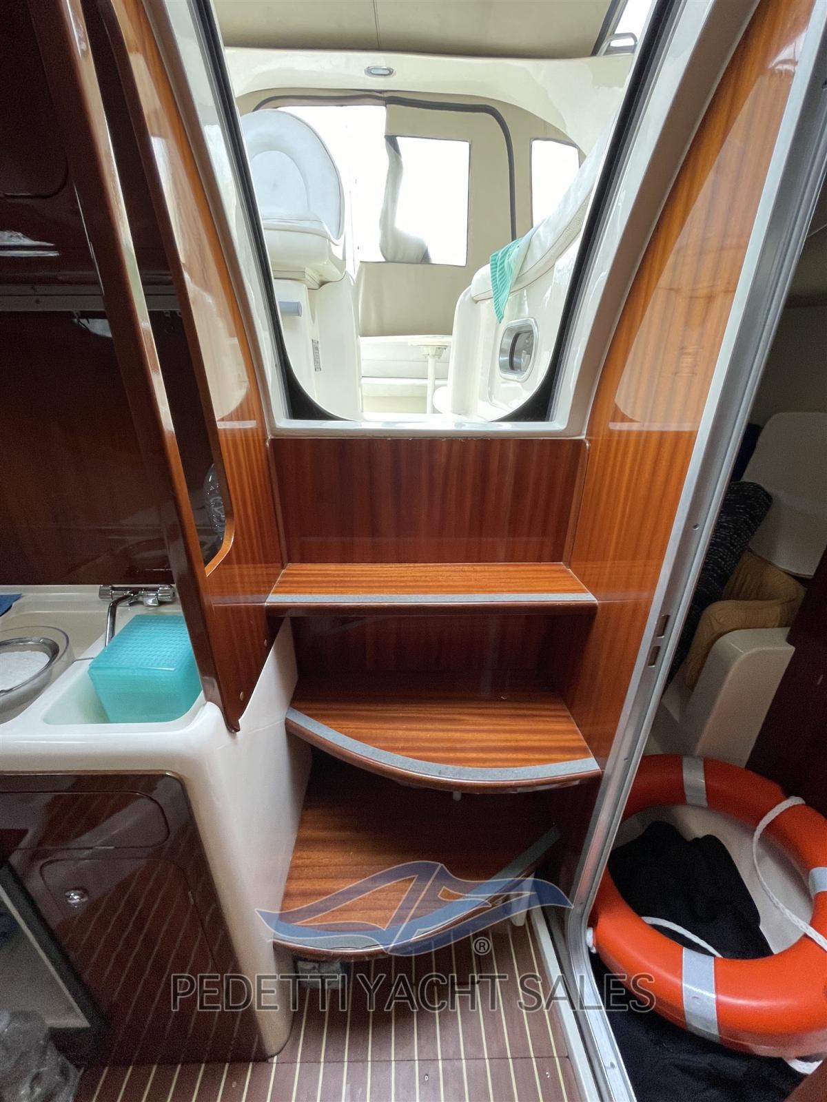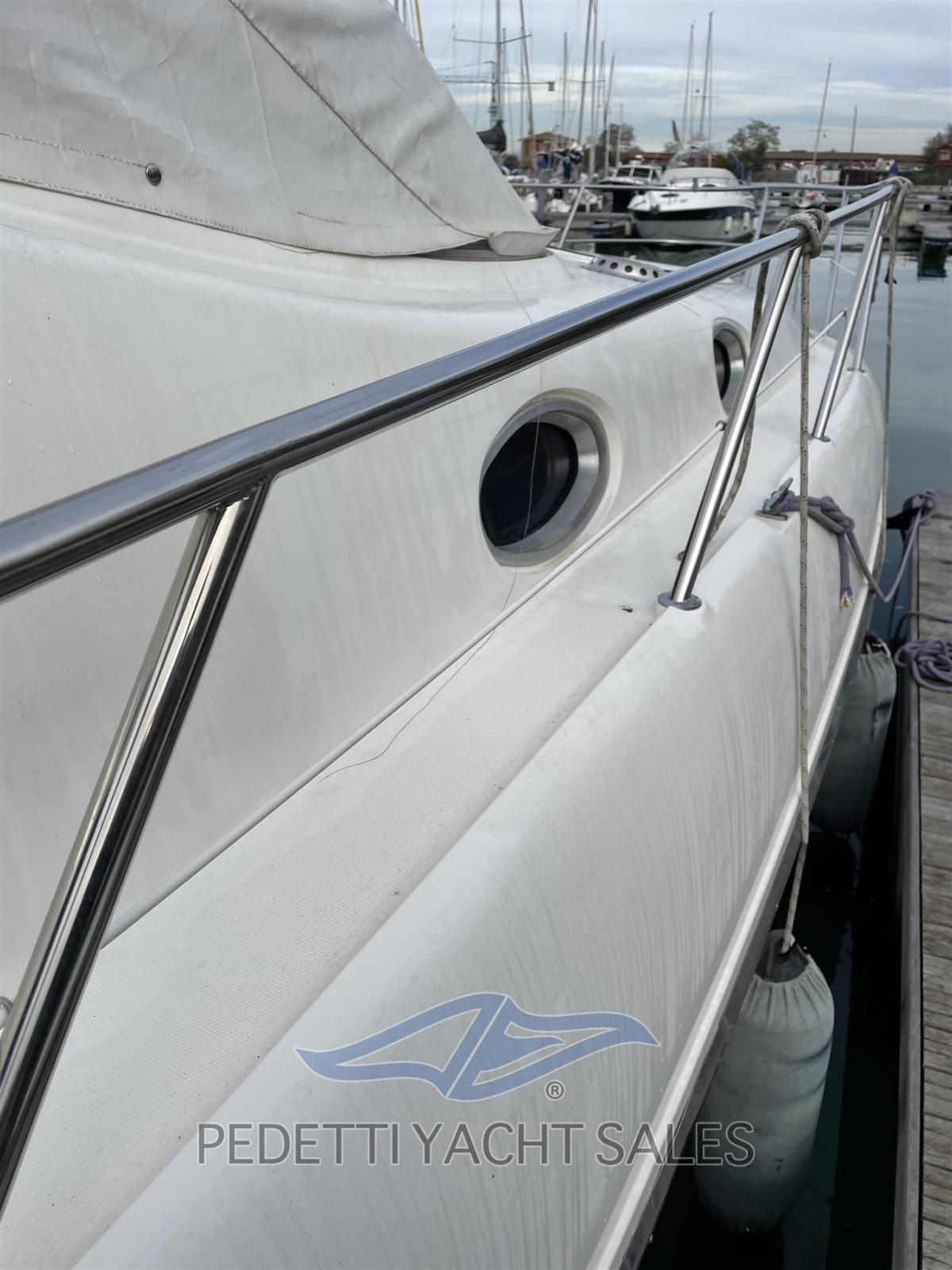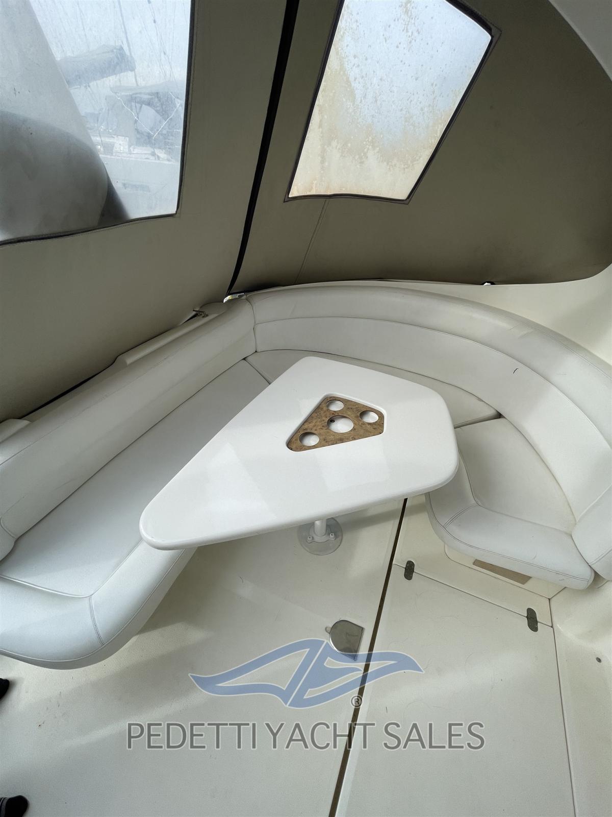 Eau sous pression, Hélice de rechange, Hard top, Lavabo dans le cockpit, Passerelle, Plateforme arrière, Pompe de cale manuelle, Porte latérale, Prise de quai, Guindeau électrique, Echelle de bain, table de cockpit, Table pliante de salon.