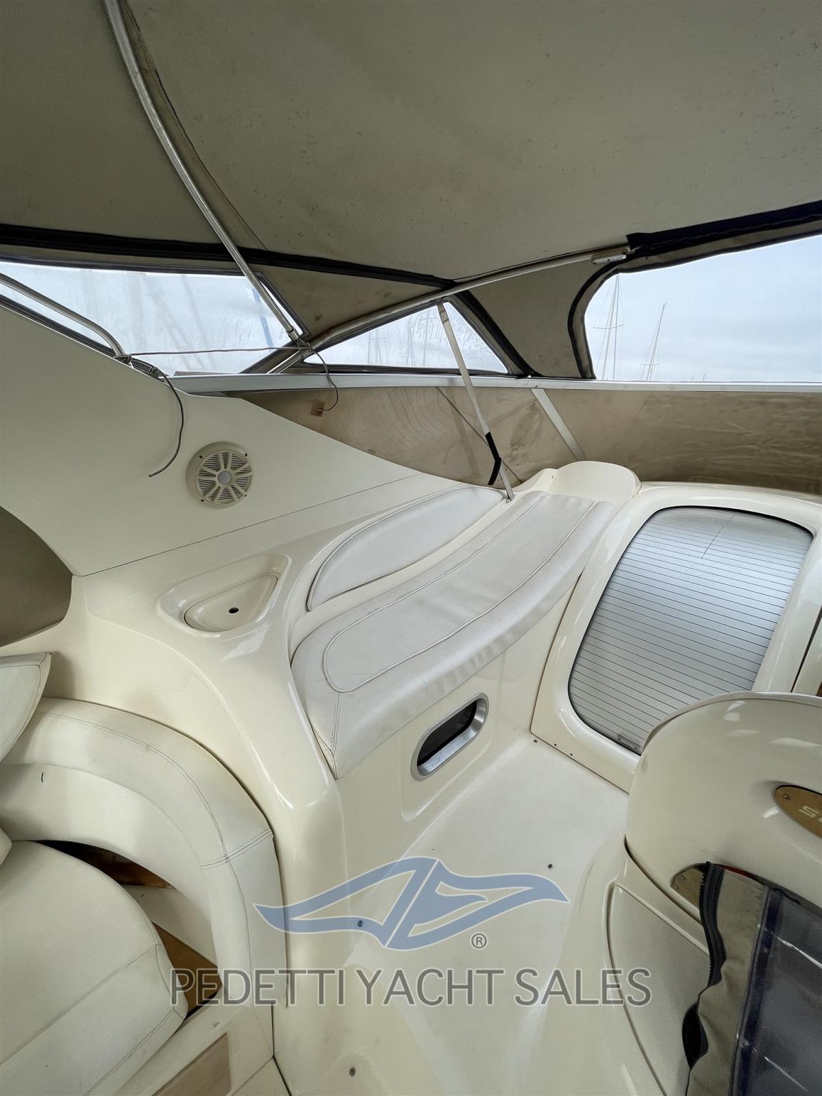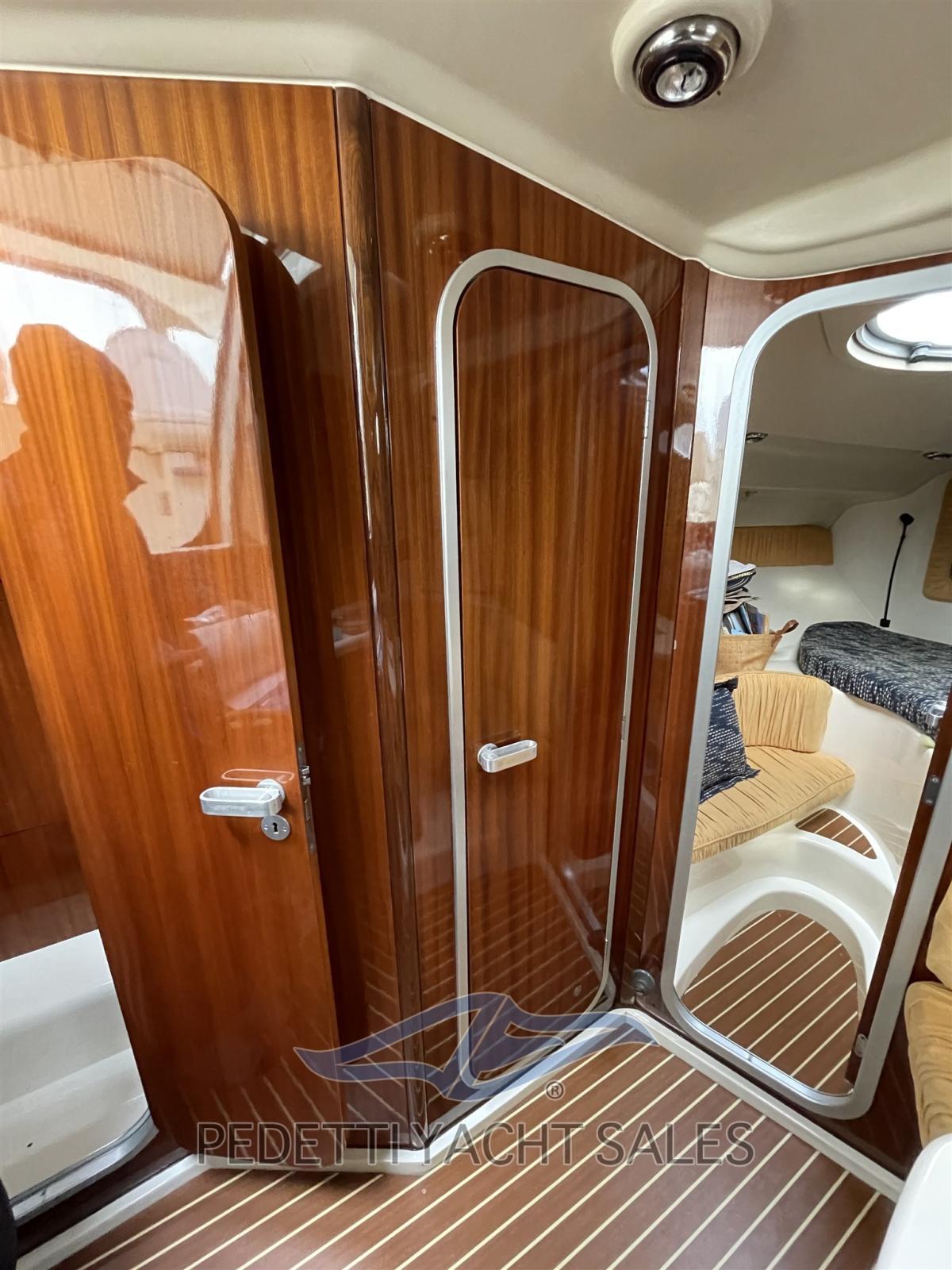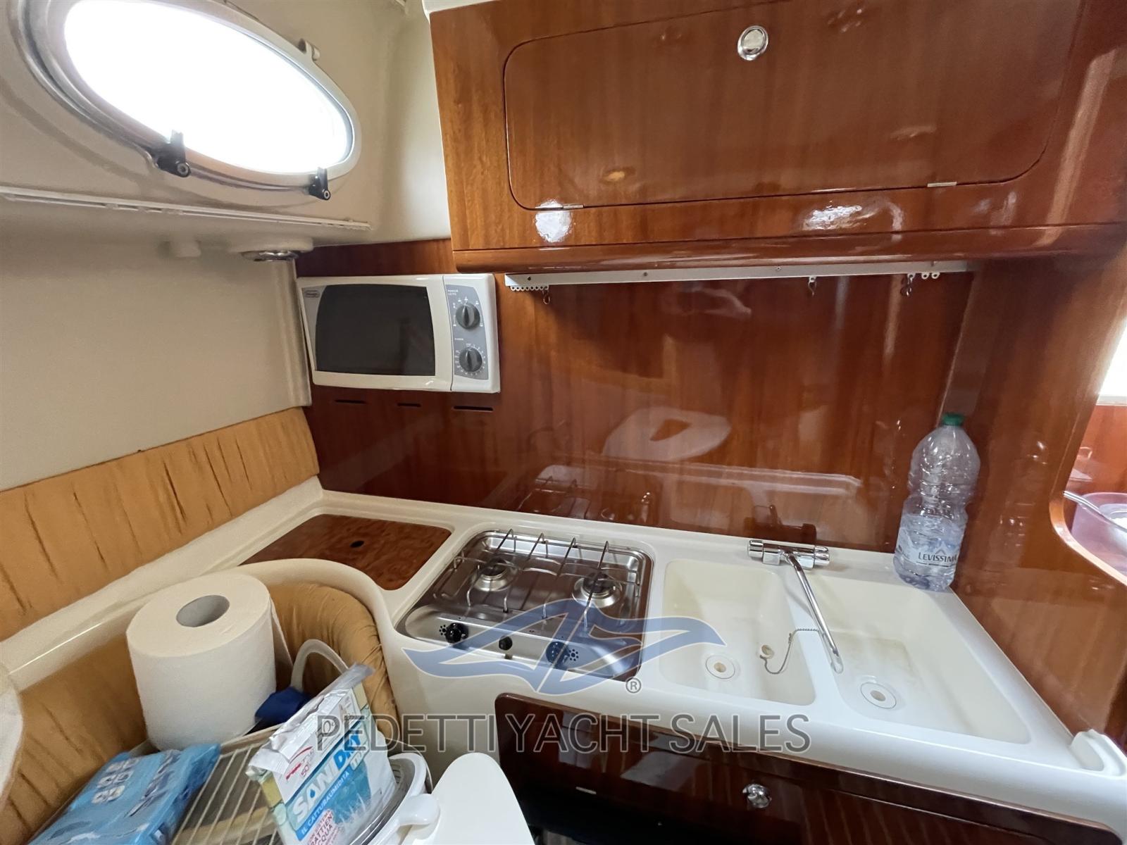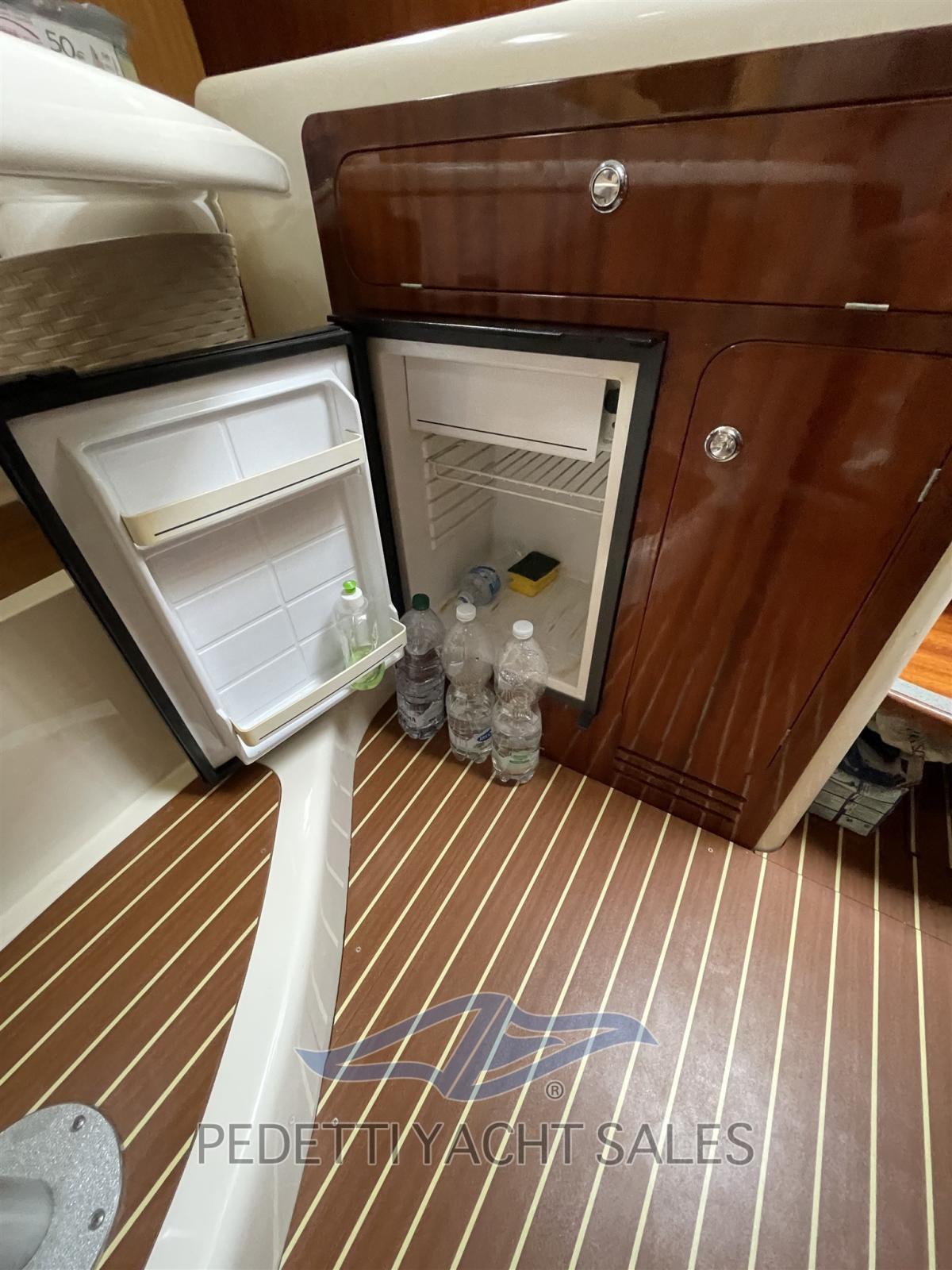 Eau sous pression, Hélice de rechange, Hard top, Lavabo dans le cockpit, Passerelle, Plateforme arrière, Pompe de cale manuelle, Porte latérale, Prise de quai, Guindeau électrique, Echelle de bain, table de cockpit, Table pliante de salon.