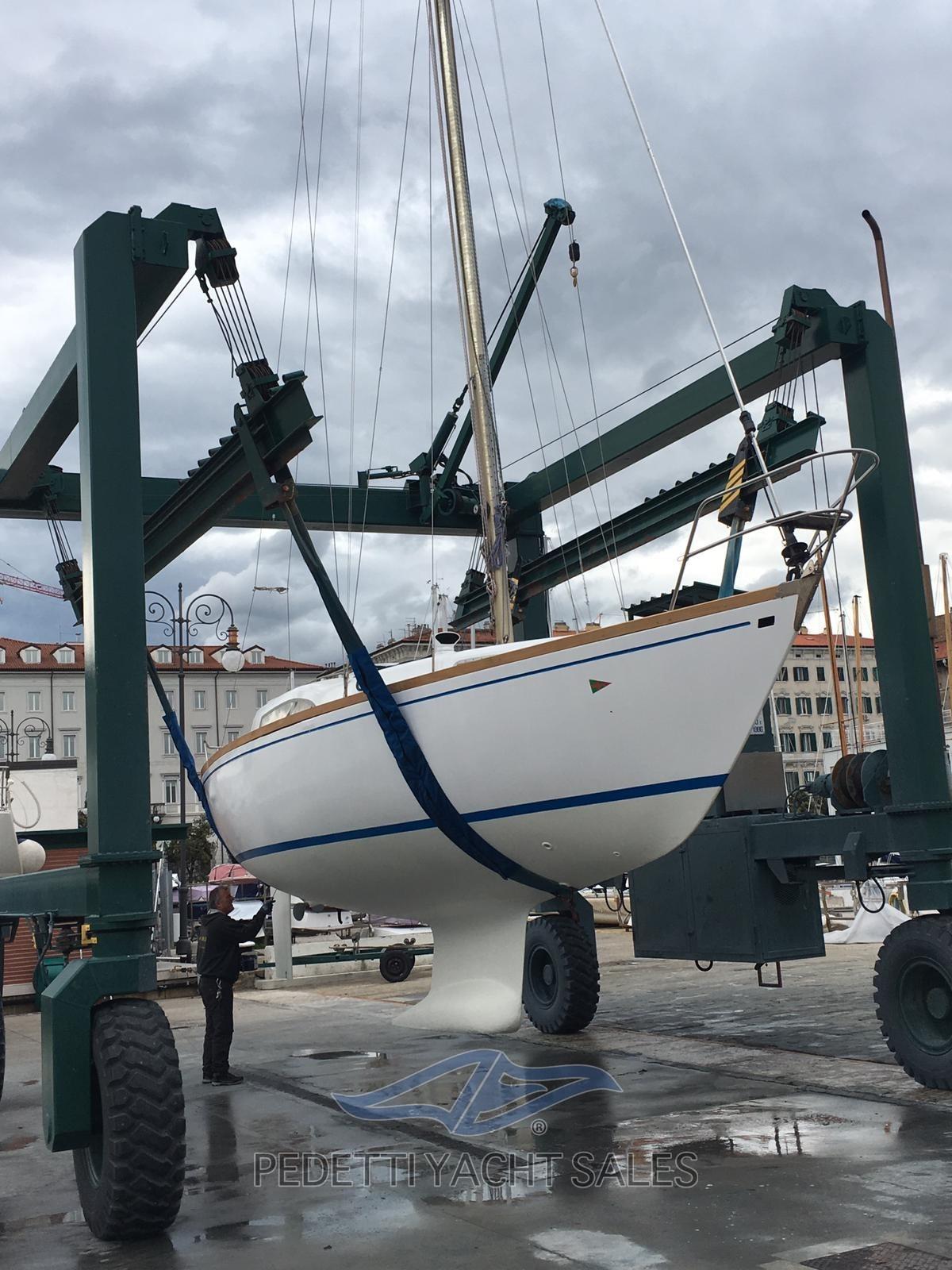L’Arpège, entièrement rénové en 2019, est un sloop armé à la tête du mât. Le plan de voile comprend une grenouille d’environ 20 mètres carrés et un génois d’environ 28 mètres carrés tandis que par la suite la taille du génois a été augmentée à 31,5 qm et réduite la grand-voile à 17 mètres carrés, la surface totale reste toujours autour de 48 mètres carrés. L’aménagement interne comprend un total de six couchettes : deux qui se glissent sous les bancs du cockpit et quatre dans la dinette. Parmi ces derniers, les deux inférieurs sont très larges et constituent également les sièges du « carré », tandis que les deux plus hauts sont beaucoup plus étroits, mais les occupants sont bien tenus par des bandes latérales en bois qui peuvent être placées dans plusieurs positions. Barre gouvernail, intérieur refait 2020, moteur entretenu 2021, nouvelles prises d’eau, auvent, ancre et réserve d’ancre, voiles 2 Gênes, 1 grand-voile et 2 espions, enrouleur , 2 nouveaux treuils, nouvelles feuilles.