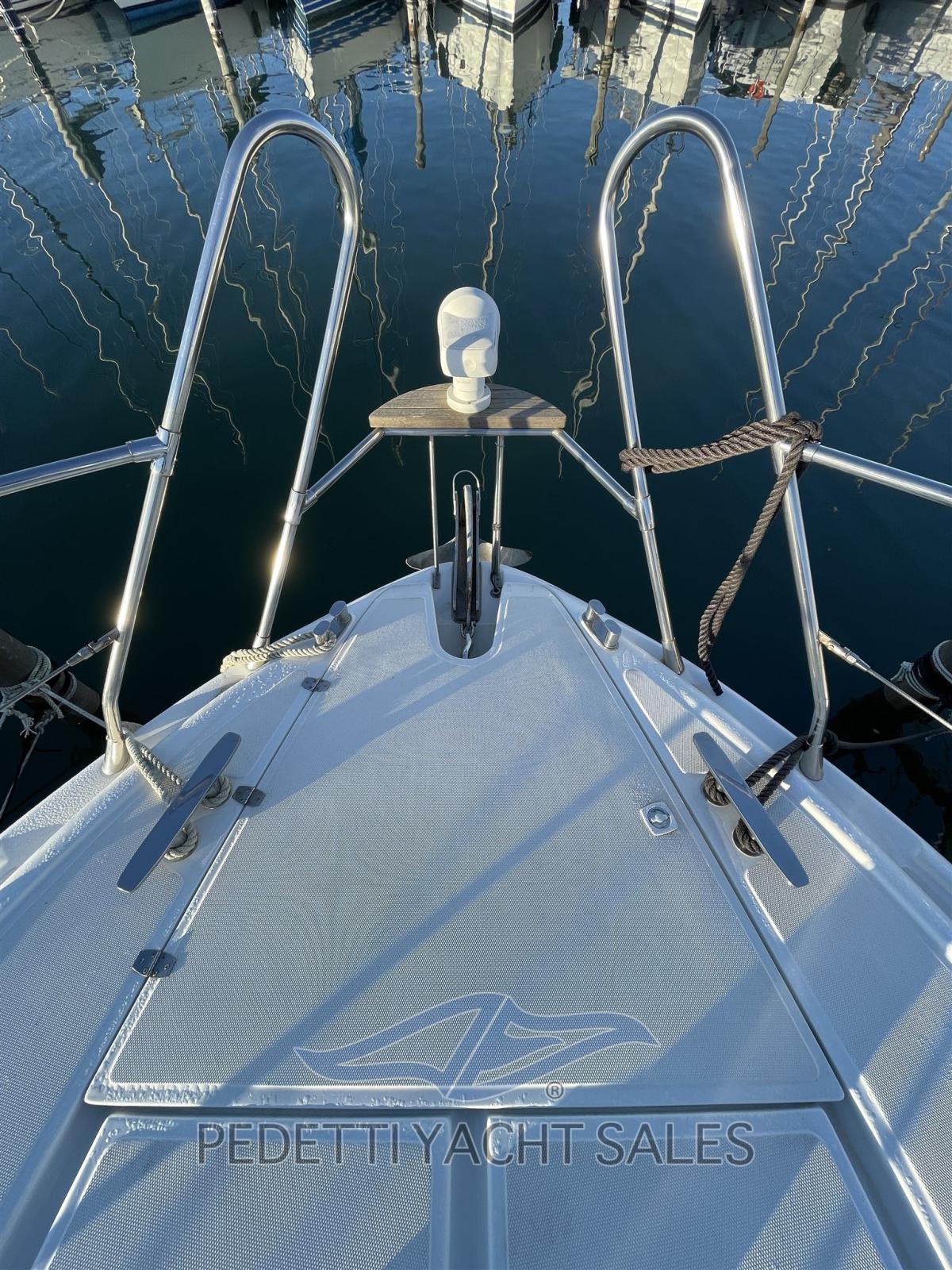 Ouverture du compartiment moteur électrique, Eau sous pression, Douche de cockpit, Lavabo dans le cockpit, Passerelle, Plateforme arrière, Pompe de cale automatique, Pompe de cale manuelle, Porte latérale, Cockpit en teck, Prise de quai, Guindeau électrique, Echelle de bain, table de cockpit, Table pliante de salon.