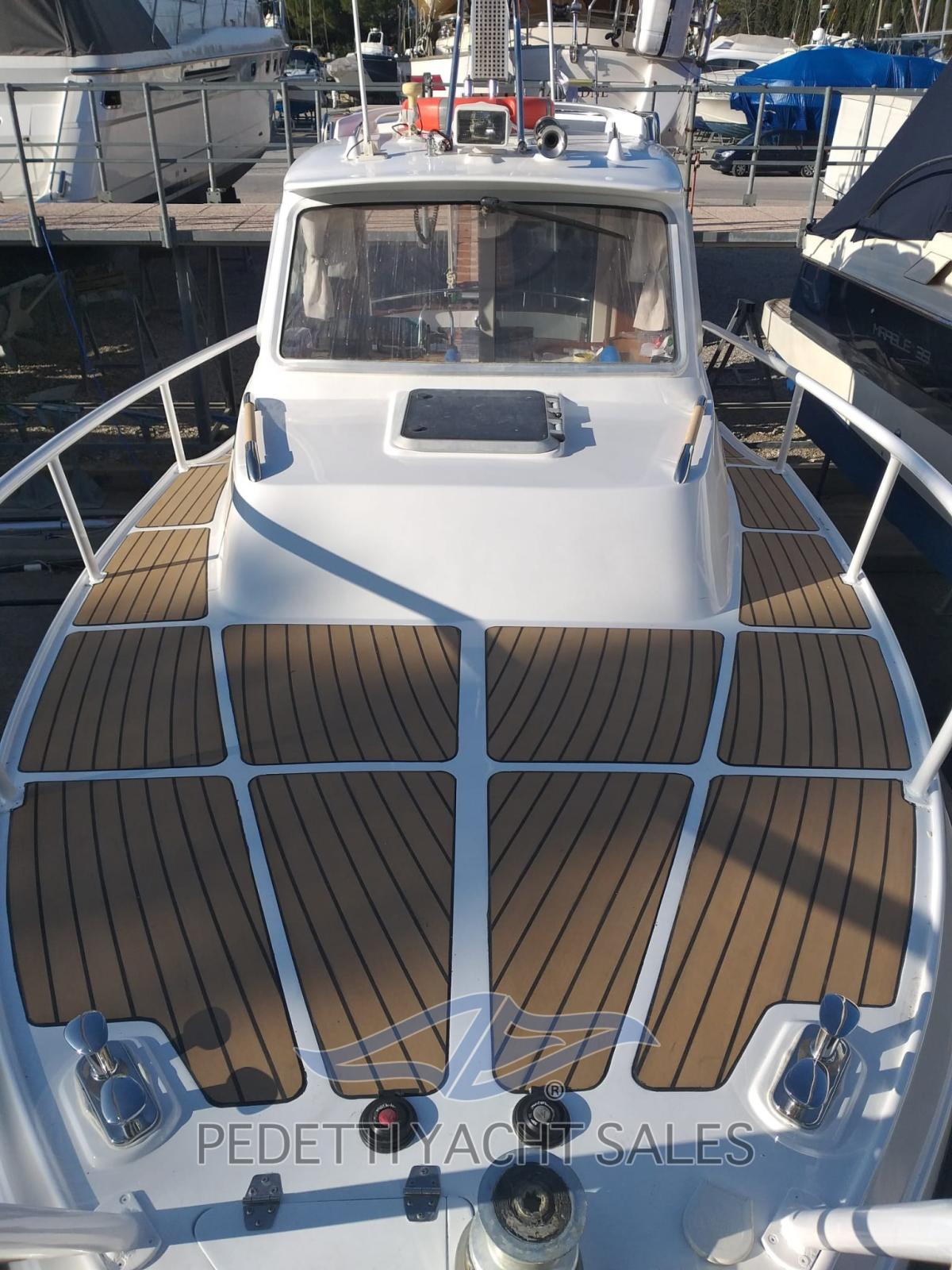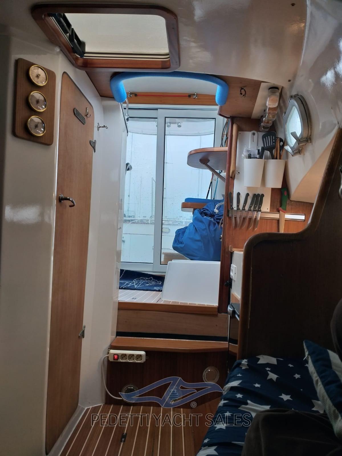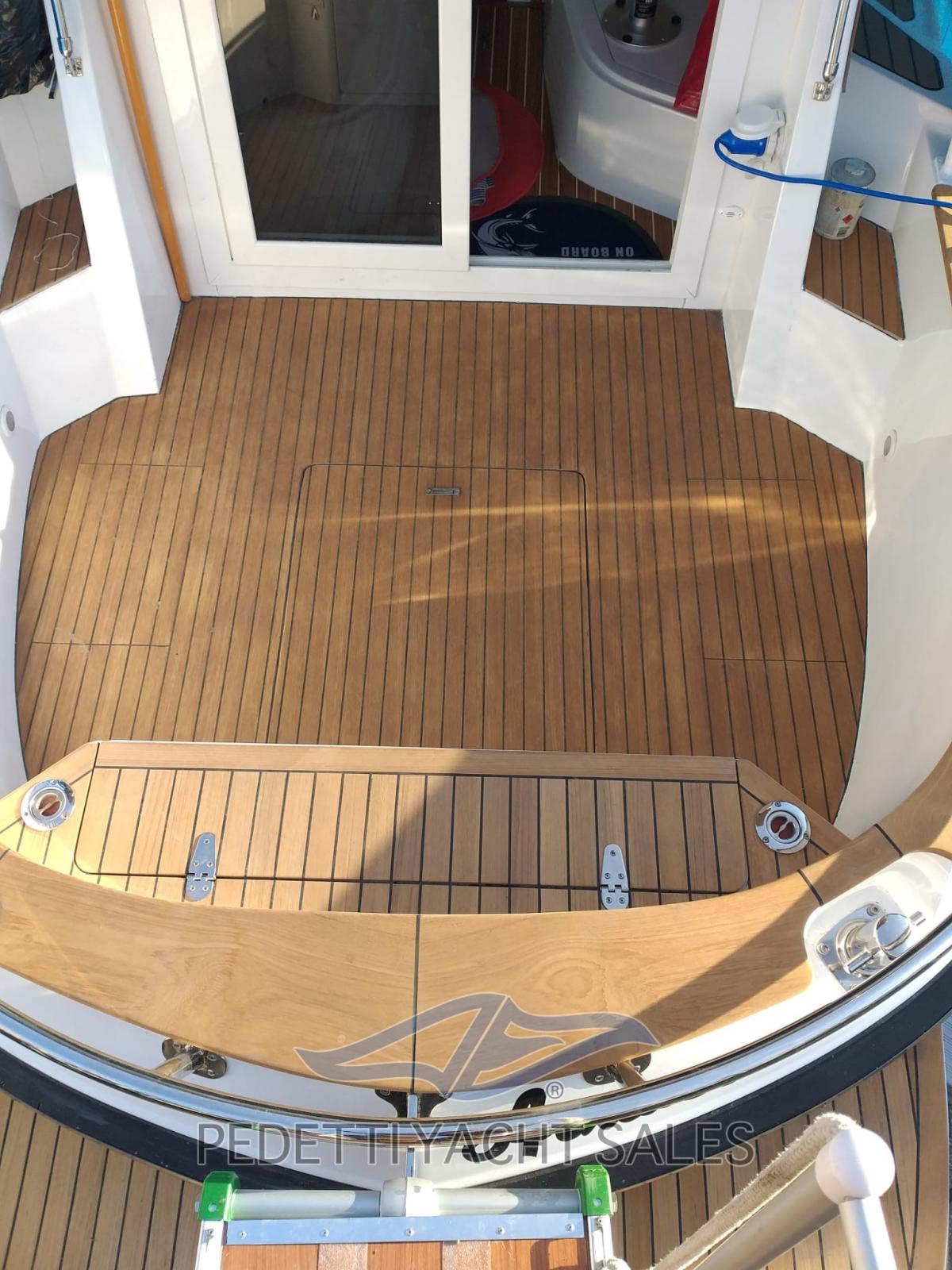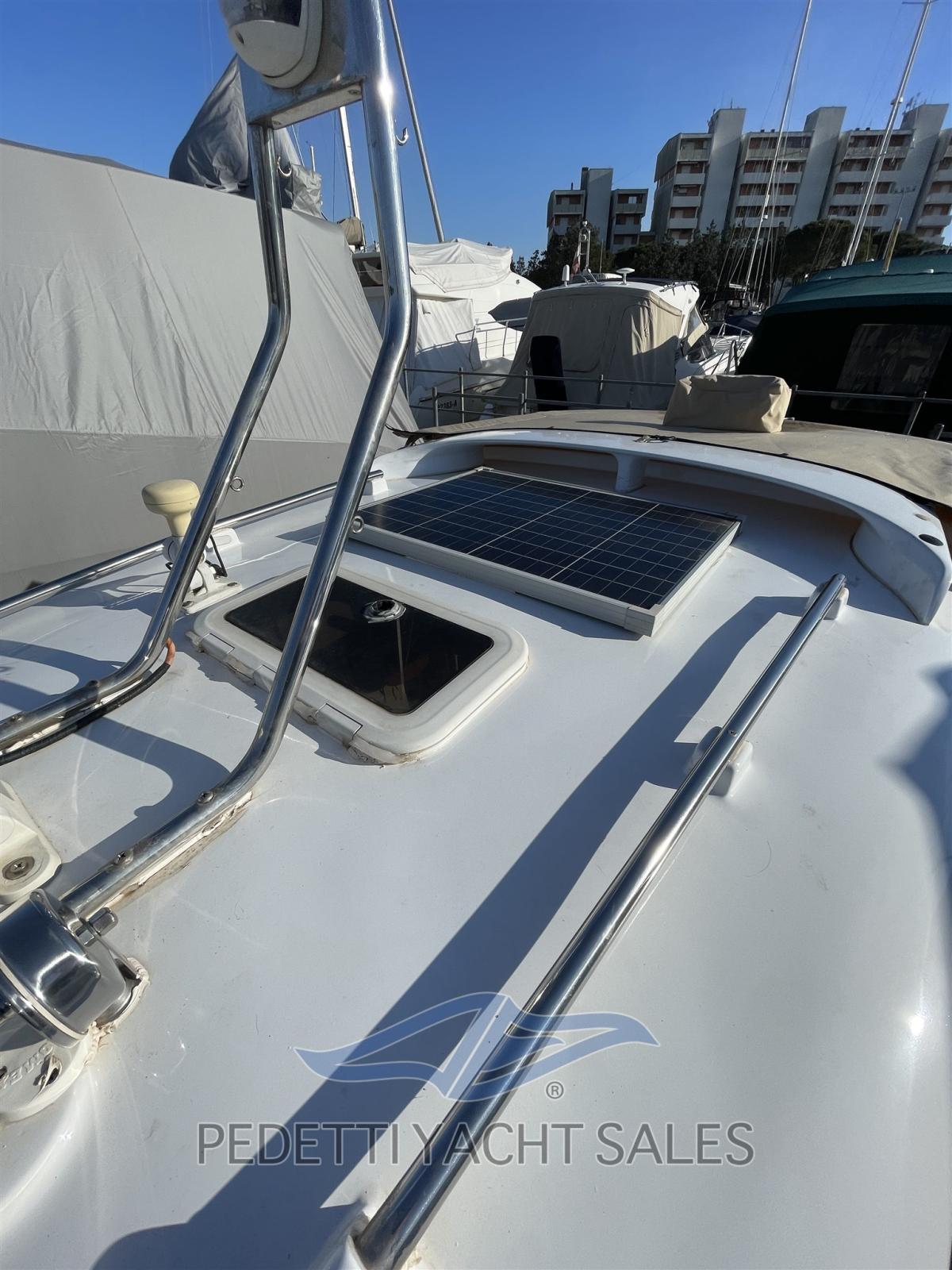 Eau sous pression, Douche de cockpit, Panneau solaire, Passerelle, Plateforme arrière, Porte latérale, Cockpit en teck, Prise de quai, Guindeau électrique, Echelle de bain, Table pliante de salon.