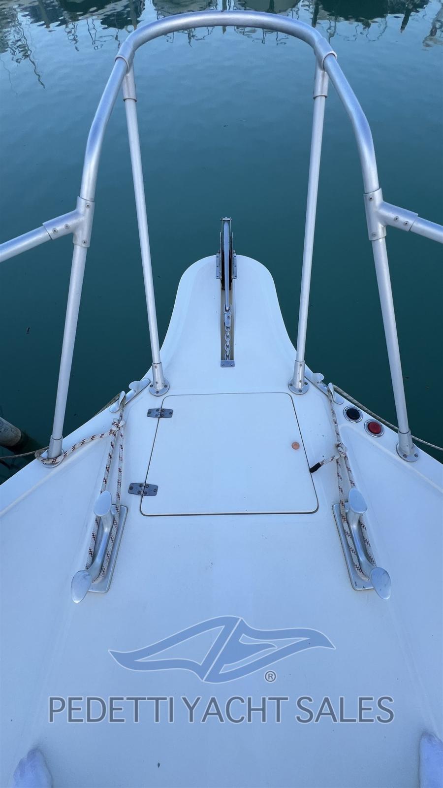 Alarme de pompe de cale, Eau sous pression, Douche de cockpit, Hélice de rechange, Phare de poursuite, Flaps hydrauliques, Extincteur(s) fixe(s), Éclairage de courtoisie, Spots sous-marins, Passerelle, Pompe de cale automatique, Pompe de cale manuelle, Cockpit en teck, Prise de quai, Connexion eau sous pression à quai, Guindeau électrique, Table pliante de salon, Annexe (con motore fuori bordo), Corne.