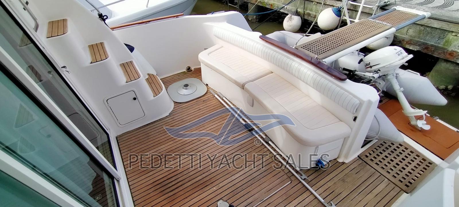 Alarme gaz, Alarme moteur, Alarme de pompe de cale, Ligne d'arbre de rechange, Flaps électriques, Bossoirs, Éclairage de courtoisie, Passerelle, Guindeau électrique, Echelle de bain, table de cockpit, Table pliante de salon, Annexe, Corne.