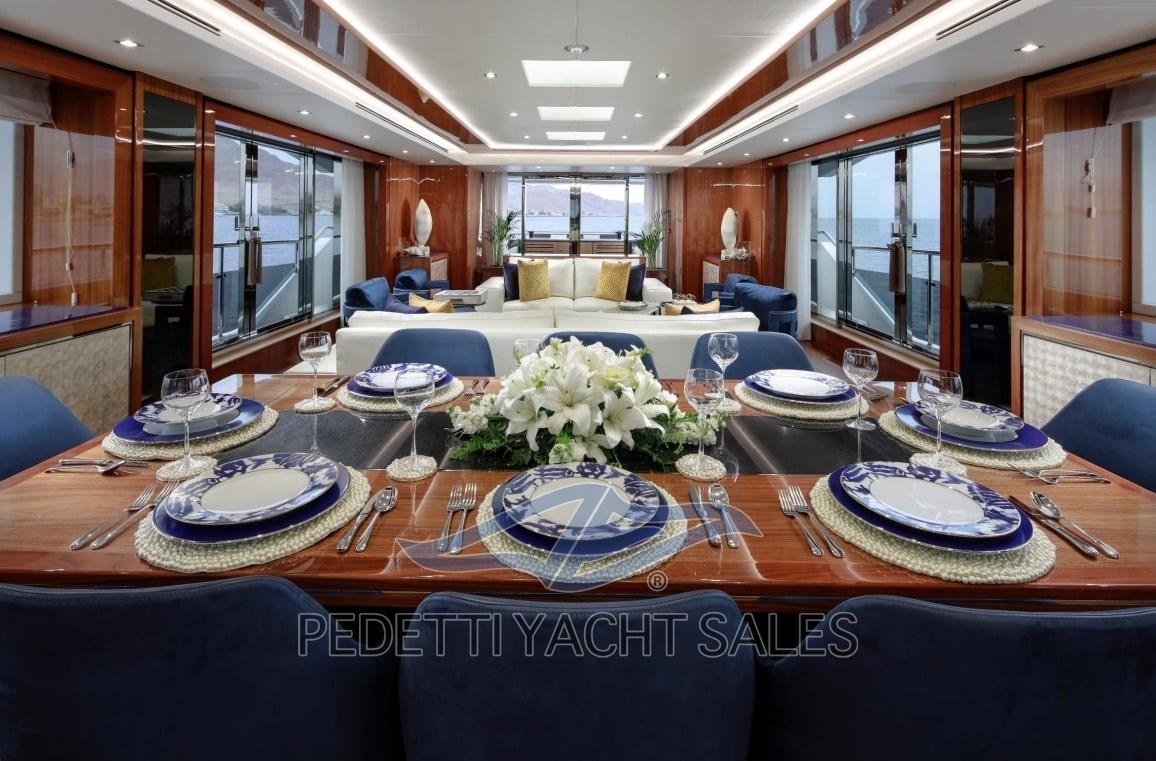 Alarme gaz, Alarme moteur, Alarme de pompe de cale, Ouverture du compartiment moteur électrique, Eau sous pression, Trim hydraulique, Système de vidange, Passavant en teck, Douche de cockpit, Double barre à roue, Phares fixes arrière, Phare de poursuite, Garage à annexe, Bossoirs pour annexe, Hard top, Extincteur(s) fixe(s), Indicateurs de flaps, Jet Boat (williams 585 Diesel Jet), Lavage de chaine, Éclairage de courtoisie, Spots sous-marins, 2 Jet-ski (Seadoo RXP-X), Passerelle, Plateforme arrière, Pompe de cale automatique, Pompe de cale manuelle, Porte latérale, Porte latérale, Cockpit en teck, Prise de quai, Connexion eau sous pression à quai, Guindeau électrique, Guindeau Hydraulique, Echelle de coupée, Echelle de bain, Selles pour Annexe, Système de filtration des eaux usées, Stabilisateurs, table de cockpit, Filières avec sortie latèrale, Corne, Winch hydraulique, Winch électrique arrière, Winch électrique avant.
