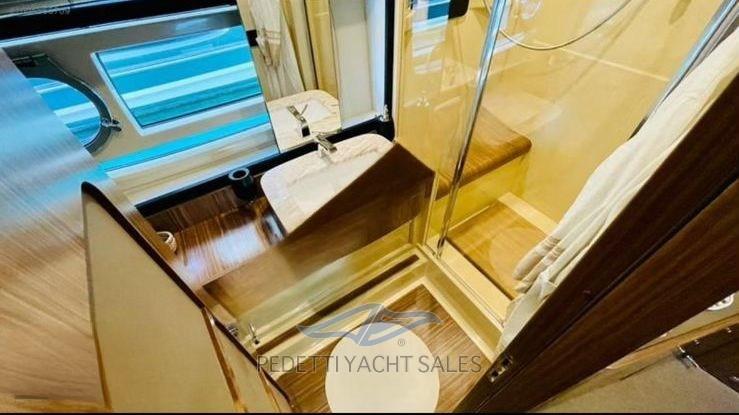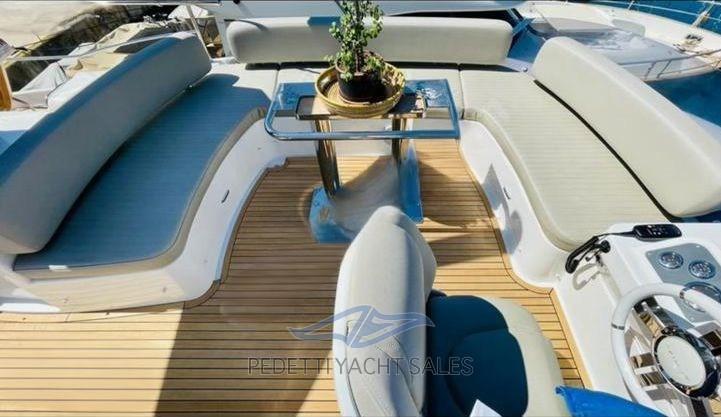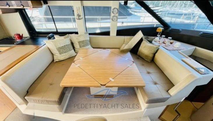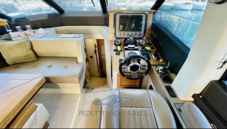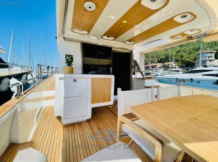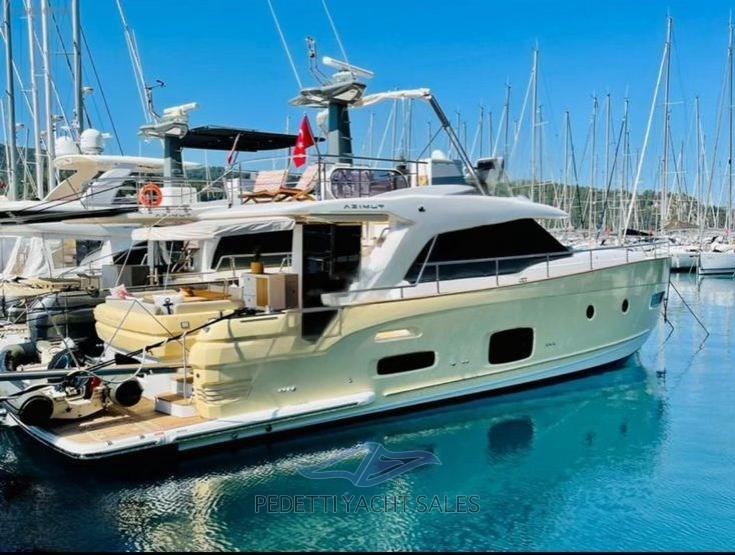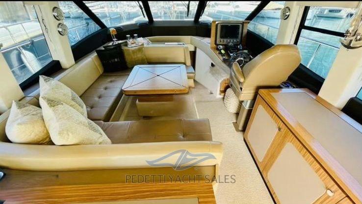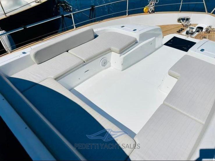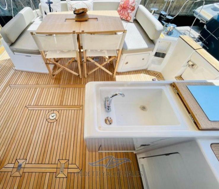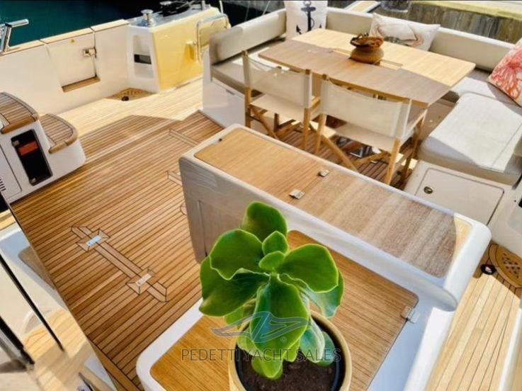 Alarme gaz, Alarme moteur, Alarme de pompe de cale, Eau sous pression, Douche de cockpit, Double barre à roue, Phares fixes arrière, Phare de poursuite, Bossoirs, Extincteur(s) fixe(s), Indicateurs de flaps, Spots sous-marins, Plateforme arrière, Pompe de cale automatique, Pompe de cale manuelle, Porte latérale, Cockpit en teck, Prise de quai, Guindeau électrique, Echelle de bain, table de cockpit, Corne, Winch électrique arrière, Winch électrique avant.