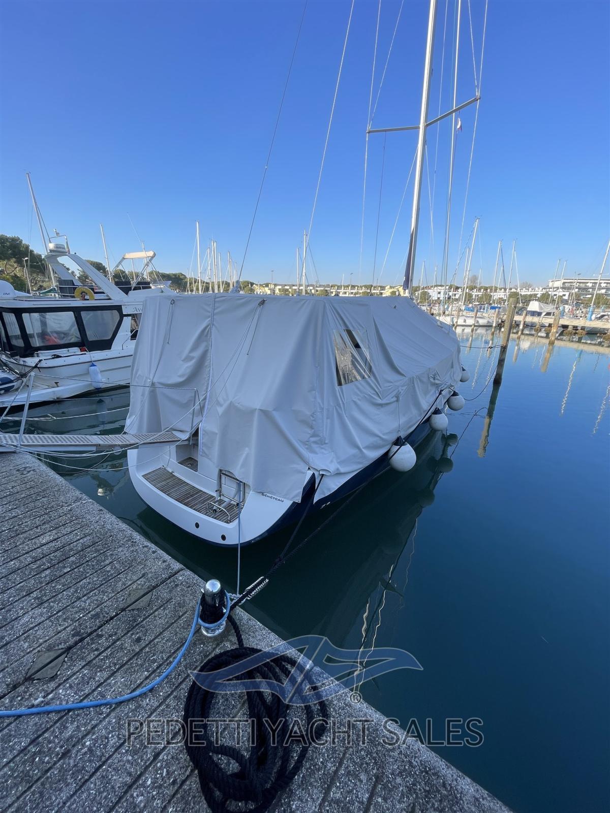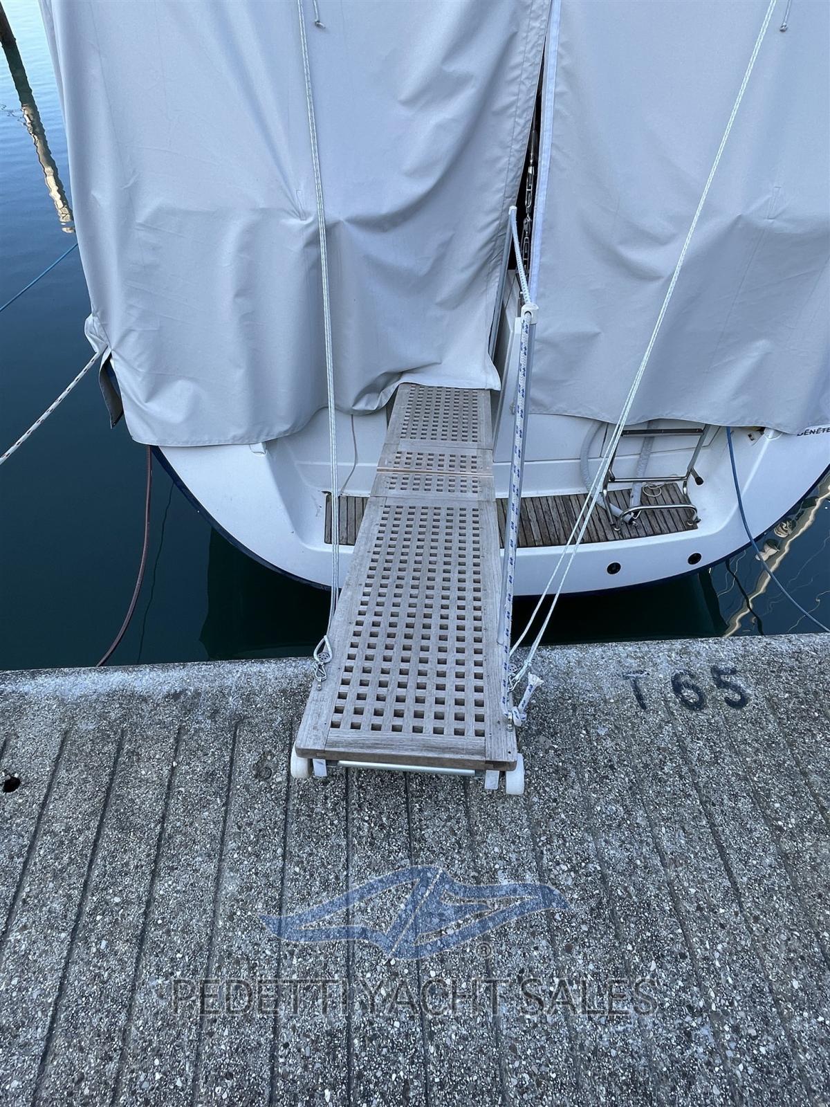 Ligne d'arbre de rechange, Eau sous pression, Passavant en teck, Douche de cockpit, Double barre à roue, Panneau solaire, Passerelle, Plateforme arrière, Pompe de cale manuelle, Porte latérale, Cockpit en teck, Prise de quai, Rollbar, Guindeau électrique, Echelle de bain, Chaise support HB, table de cockpit, Table pliante de salon.
