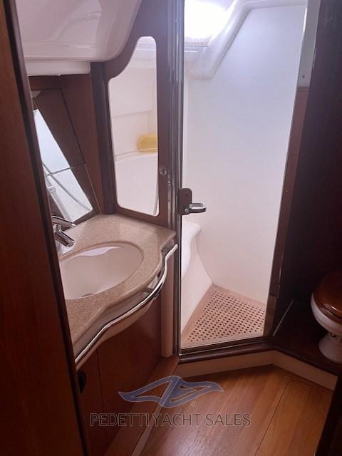 Alarme gaz, Alarme moteur, Alarme de pompe de cale, Eau sous pression, Douche de cockpit, Passerelle, Pompe de cale automatique, Pompe de cale manuelle, Cockpit en teck, Prise de quai, Guindeau électrique, Echelle de bain, table de cockpit, Windex.