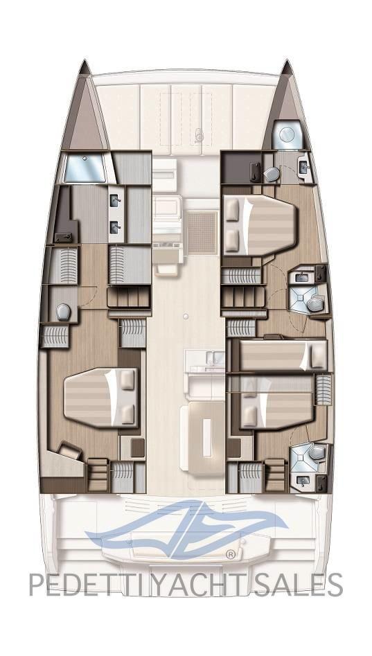 Alarme gaz, Alarme moteur, Alarme de pompe de cale, Eau sous pression, Passavant en teck, Douche de cockpit, Double barre à roue, Phares fixes arrière, Phare de poursuite, Bossoirs pour annexe, Lavabo dans le cockpit, Éclairage de courtoisie, Spots sous-marins, Plateforme arrière, Pompe de cale automatique, Pompe de cale manuelle, Porte latérale, Cockpit en teck, Prise de quai, Répétiteur électronique, Guindeau Hydraulique, Gréement Rod, Echelle de bain, Selles pour Annexe, table de cockpit, Table pliante de salon, Filières avec sortie latèrale, Corne, Winch, Winch électrique arrière, Winch électrique avant.