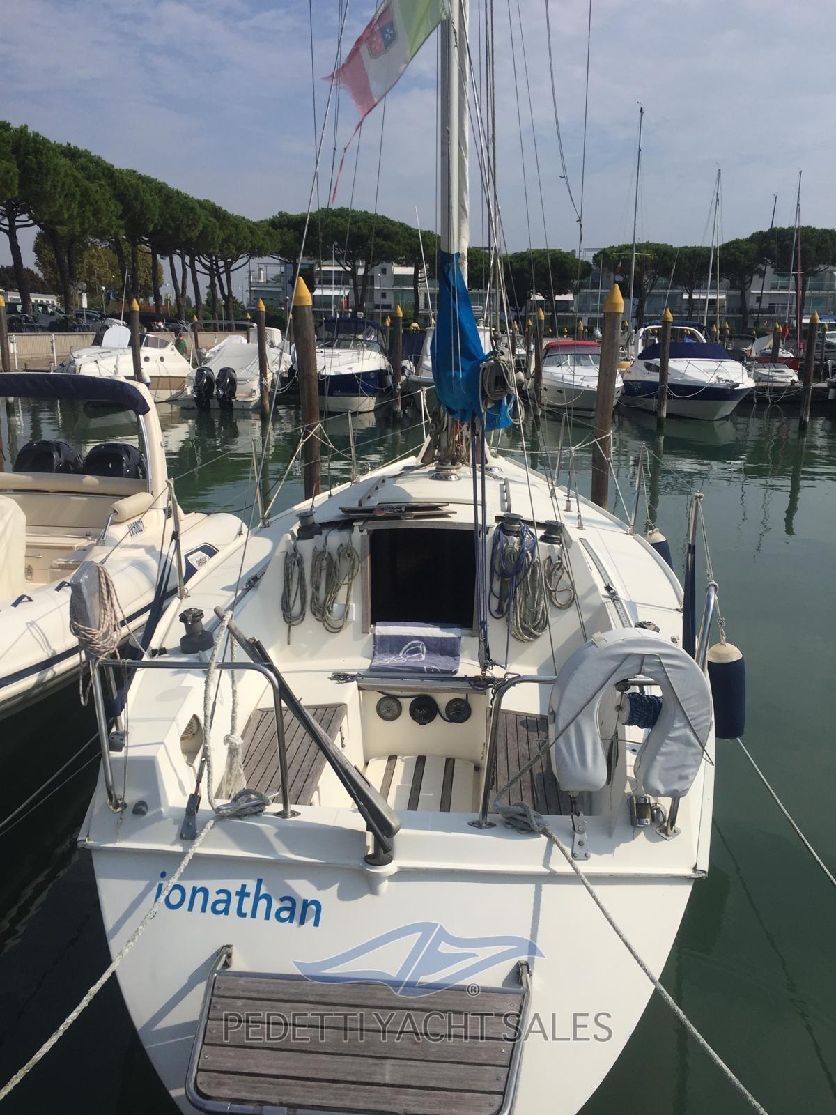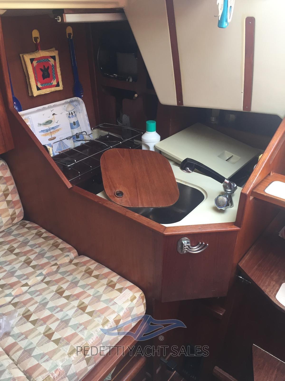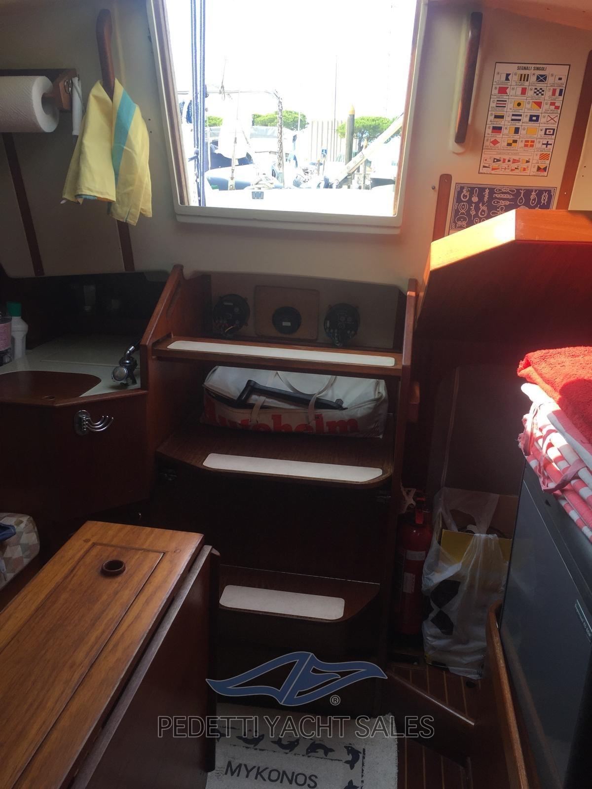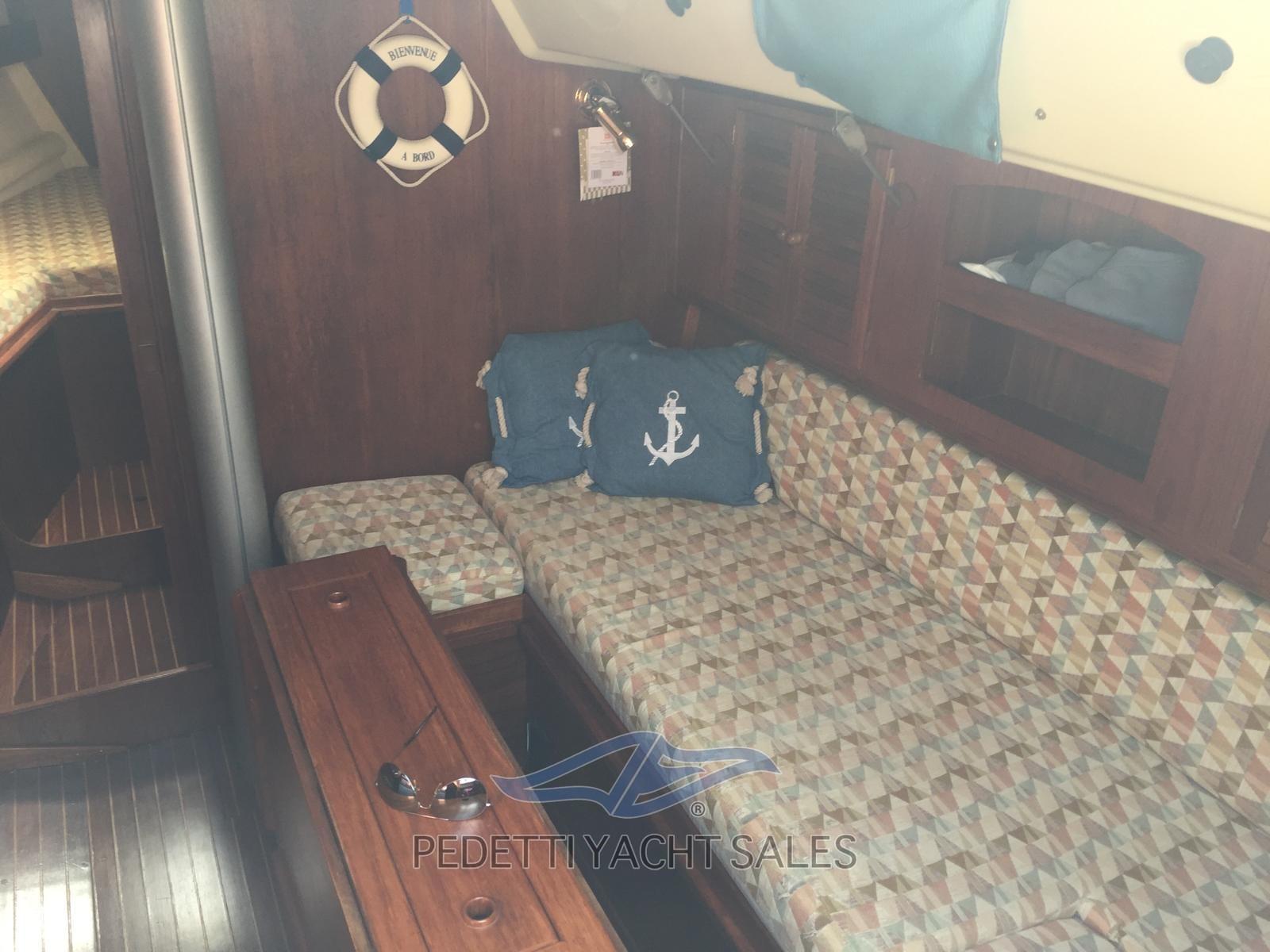 Sous le pont, il y a le salon avec cuisine à bâbord et un siège en forme de « C » à tribord, une cabine double et la salle de bain à l’avant. À gauche de la descente, il y a une quatrième couchette, tandis qu’à tribord, il y a la table à cartes. Révisé en excellent état, prêt à la bouée