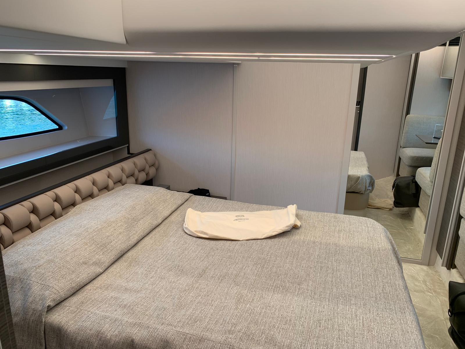 Grâce à la lumière naturelle et aux intérieurs aux teintes douces, elle a une sensation très chaleureuse et accueillante. Le mélange d’éléments de design essentiels, de cadres laqués et de couleurs douces caractérise le design de l’espace de vie. Sous les ponts, l’aménagement élégant et fonctionnel se développe autour de la magnifique cabine double master pleine largeur. A / C à travers l’intérieur.
