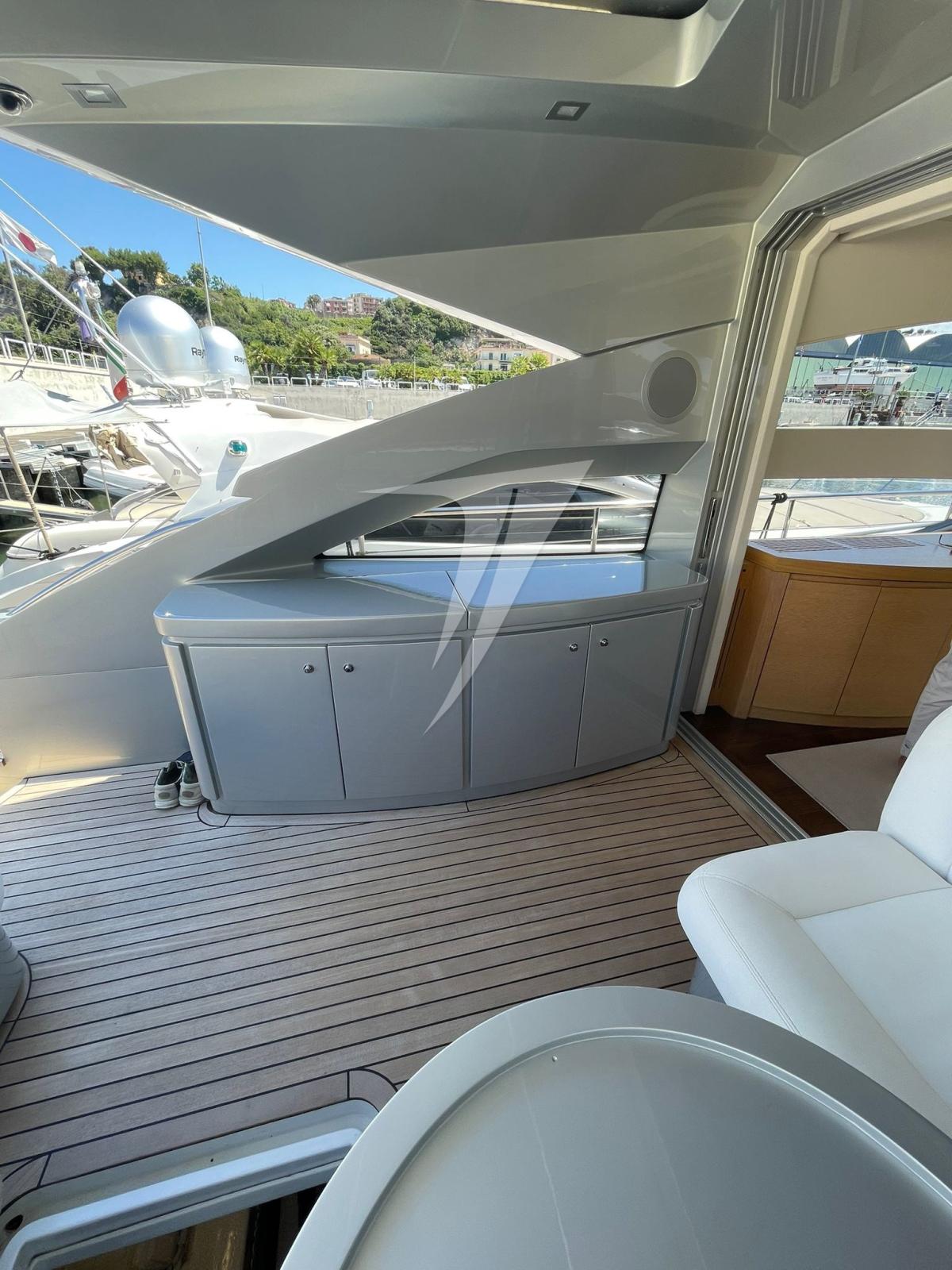 Eau sous pression (doppia 24-220), 12 Batteries (2021), Passavant en teck, 2 Chargeur de batterie (1 Mastervolt +1 Victron Inverter 4,5 Kw/caricabatterie), Couleur spéciale, Douche de cockpit, Phares fixes arrière (+ laterali), Phare de poursuite, Flaps hydrauliques, Garage à annexe, Extincteur(s) fixe(s), Indicateurs de flaps, Lavage de chaine, Éclairage de courtoisie, Spots sous-marins, Passerelle, Plateforme arrière, Porte latérale, Cockpit en teck, 2 Prise de quai, Connexion eau sous pression à quai, Onduleur, Guindeau électrique, Echelle de bain (elettrica), table de cockpit, Annexe (Williams 325 jet), Corne, 2 Winch électrique arrière, Winch électrique avant.