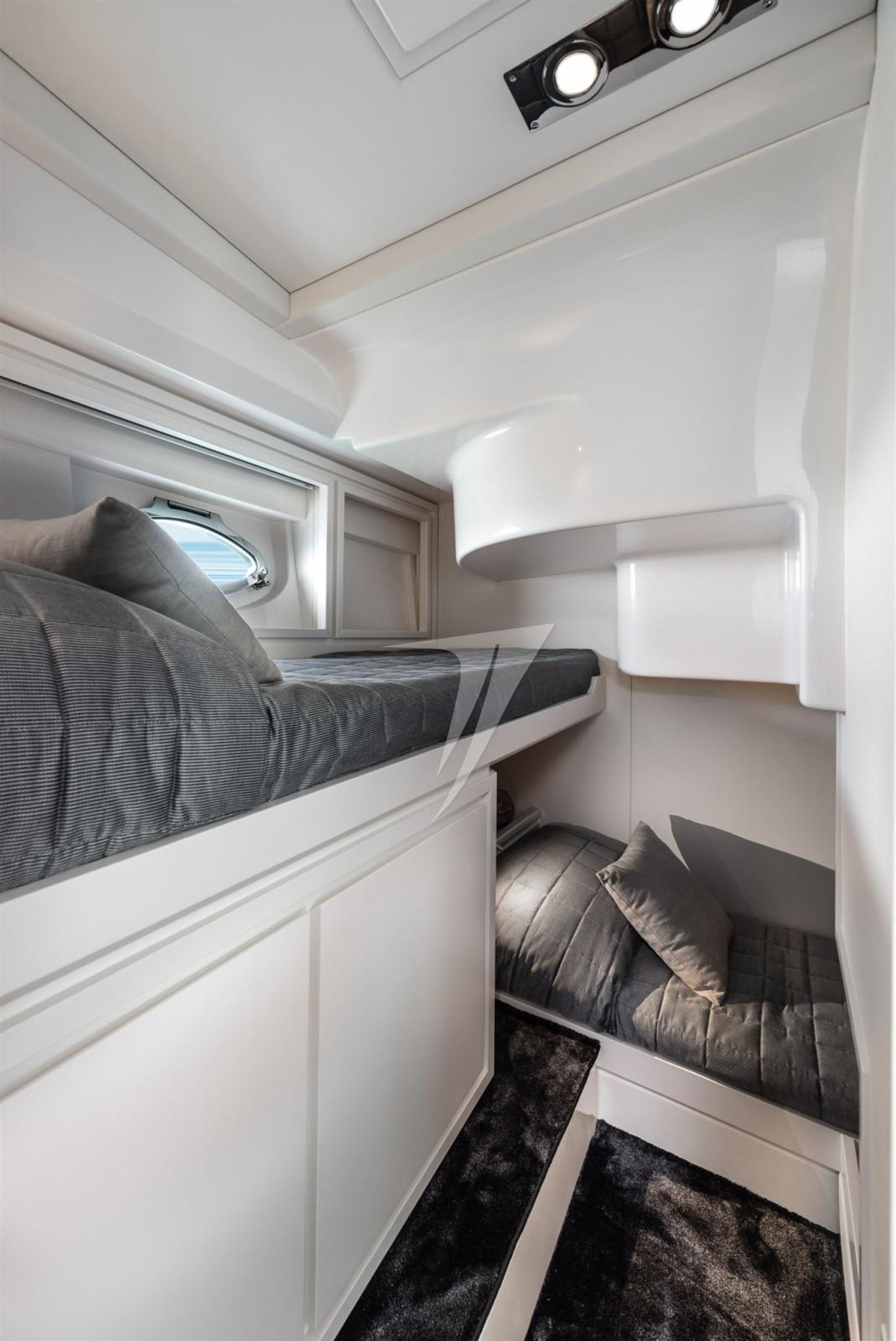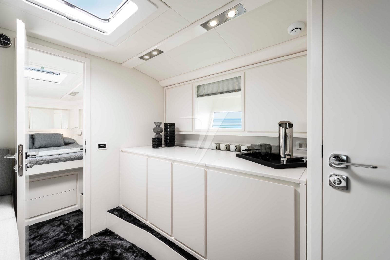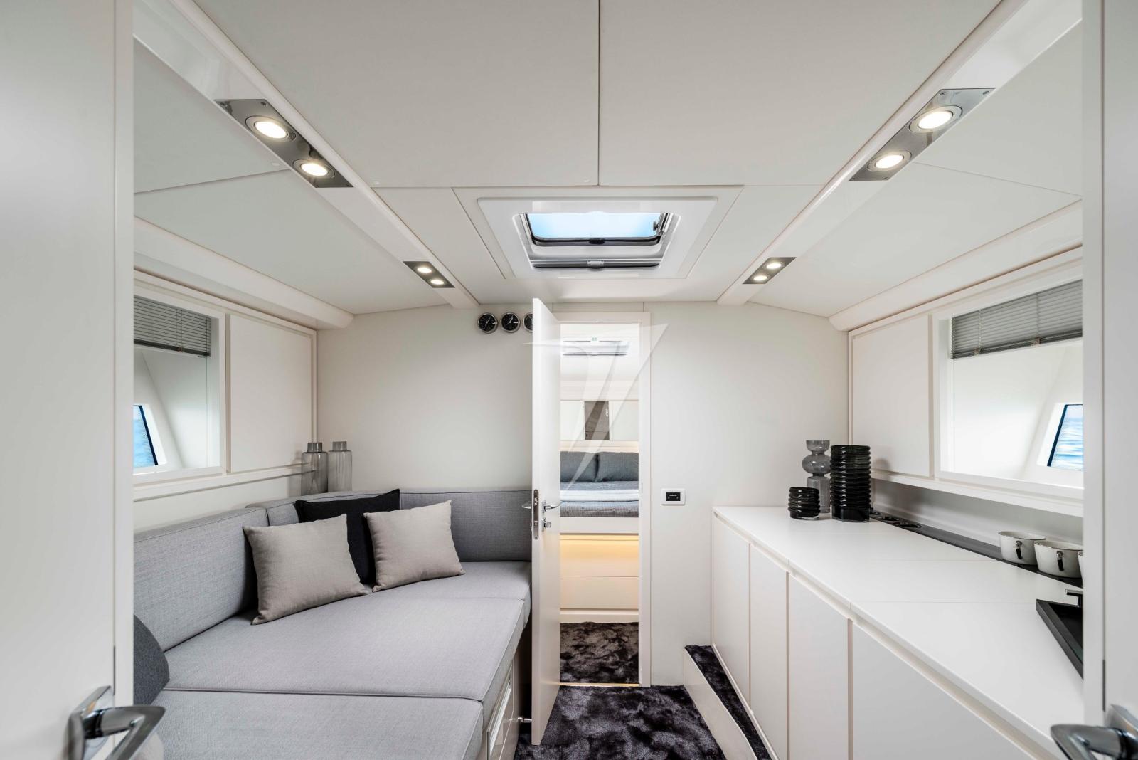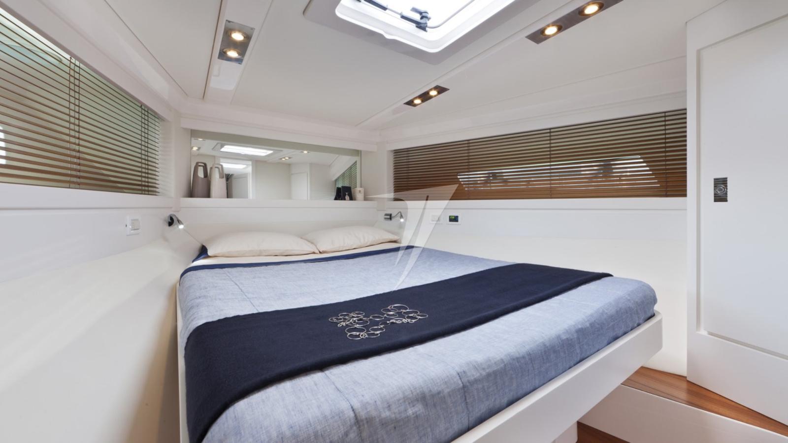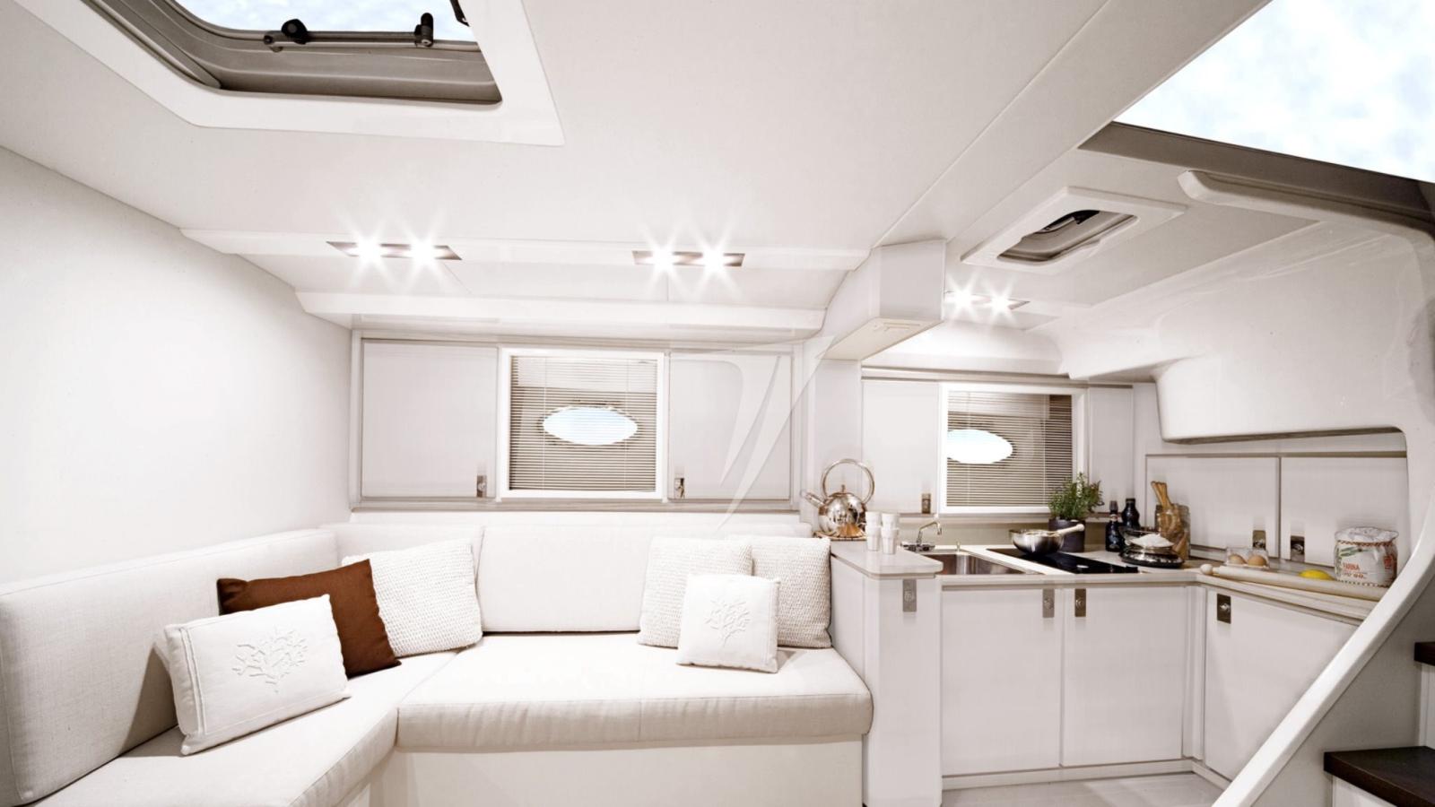 Les intérieurs spacieux se distinguent par leur décor en noyer qui contraste avec les finitions blanches. De plus, grâce à l’évolution stylistique des grandes fenêtres, les pièces sous le pont sont lumineuses et aérées.