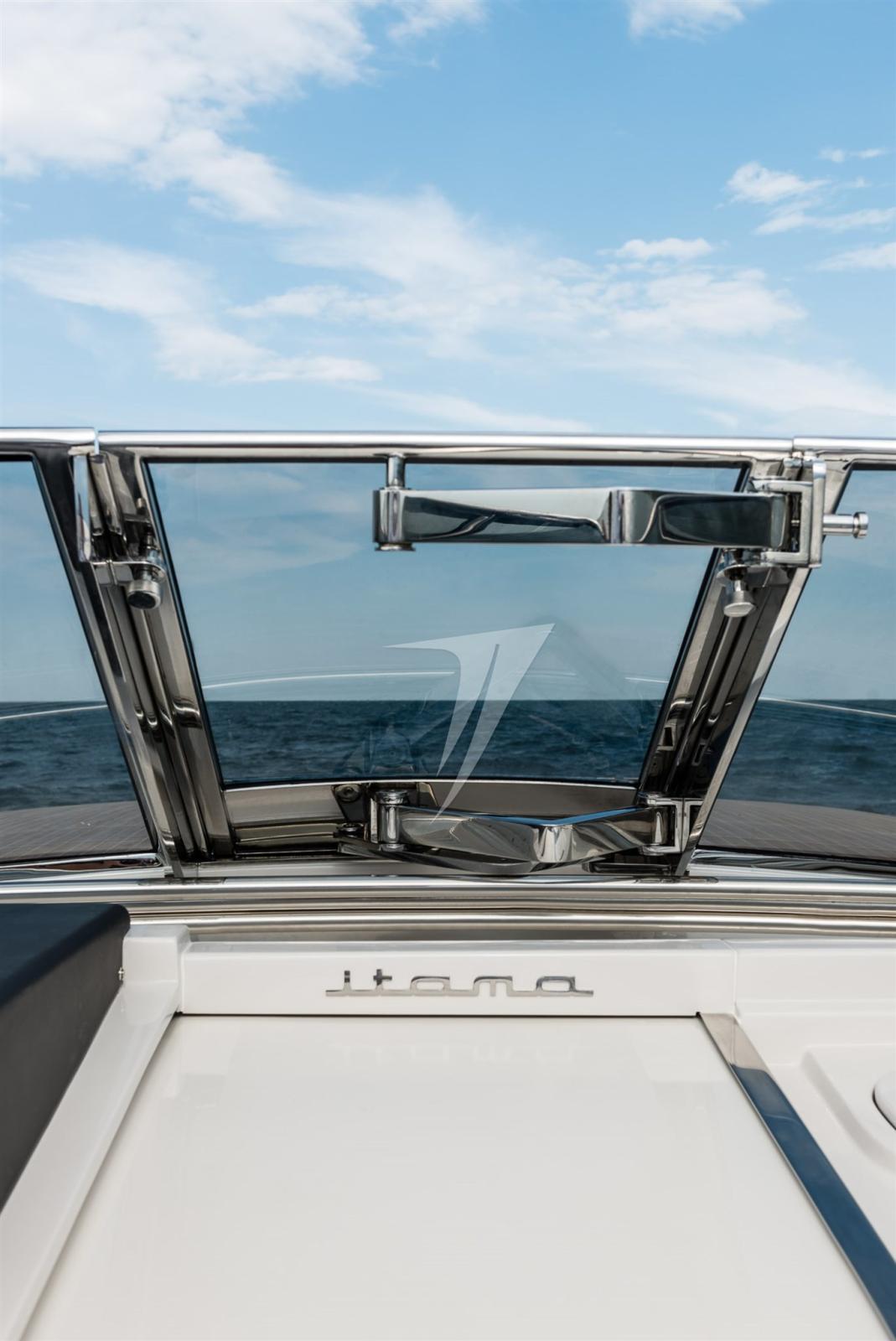 Les lignes épurées et essentielles, avec la fameuse coque en V à 22° de profondeur, rendent l’Itama 45RS unique dès le premier coup d’œil.