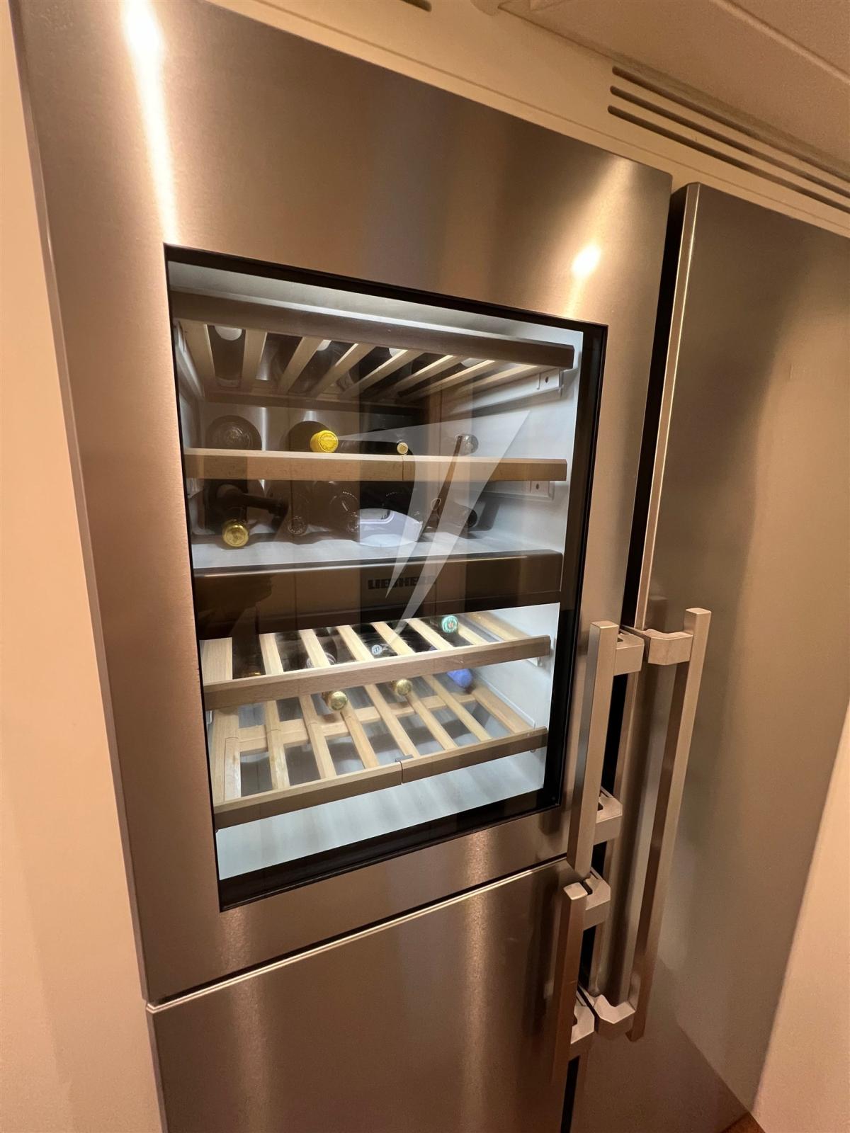 Sèche linge (Miele), Cuisine, Cuisinière, Réfrigérateur extérieur, Réfrigérateur intérieur (Liebherr 2021), Machine à glaçons, Lave-vaisselle, Lave-linge (Miele), Machine a café, Four micro-ondes (Samsung), Winecooler (Liebherr 2021).