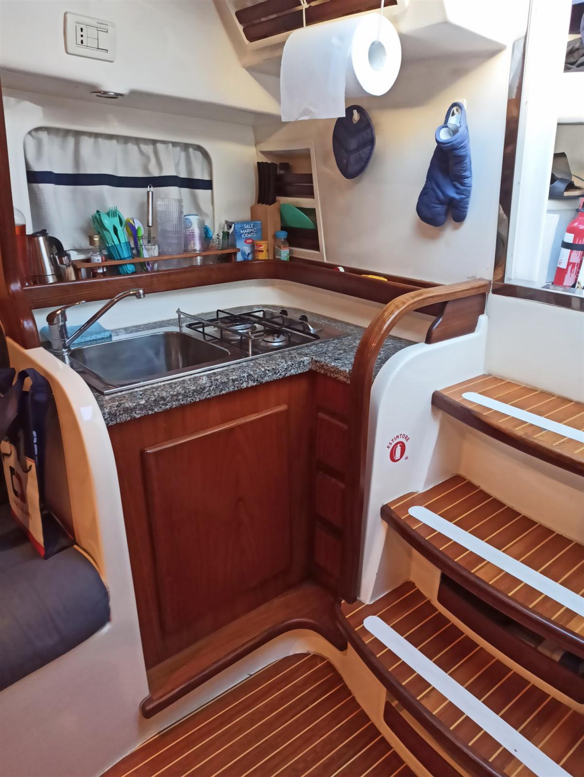 Cuisine tribord avec clochar à deux brûleurs et évier