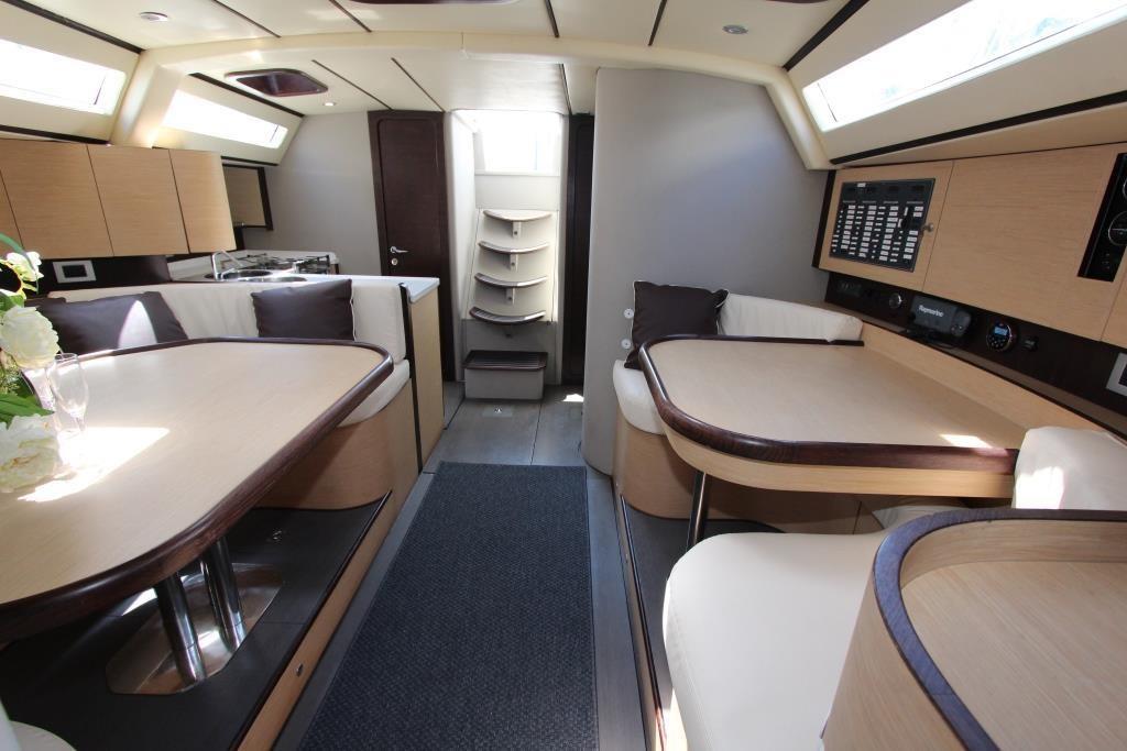 Ce GY 53 de 2008 à vendre est fabriqué par Gieffe Yachts et est un superbe croiseur de course, avec des formes frappantes mais élégantes, conçu pour la vitesse et le confort. Ce bateau est en très bon état et a fait l’objet d’un vaste refit en 2016. Parmi une longue liste d’améliorations et de remplacements, il a fait réviser et inspecter le gréement, l’installation complète de l’électronique Raymarine, un nouveau système TV et stéréo, un nouveau mât, une bôme et des barres de flèche, la révision et le remplacement de la plupart des systèmes électriques, la révision complète du moteur Yanmar et de la saildrive. Il est très bien équipé à l’intérieur comme à l’extérieur