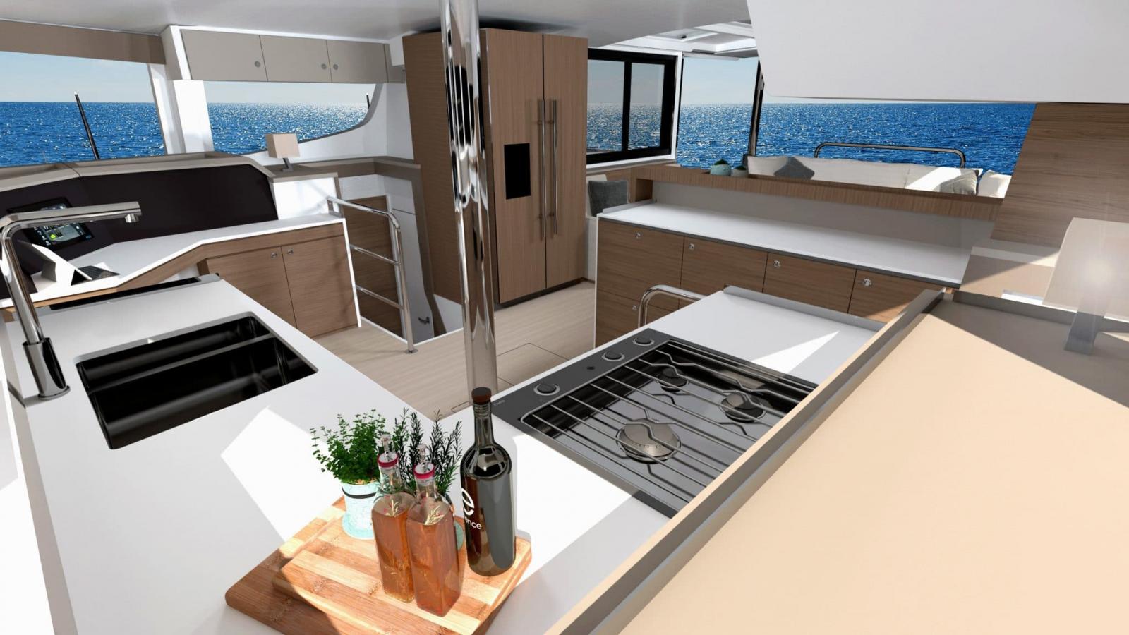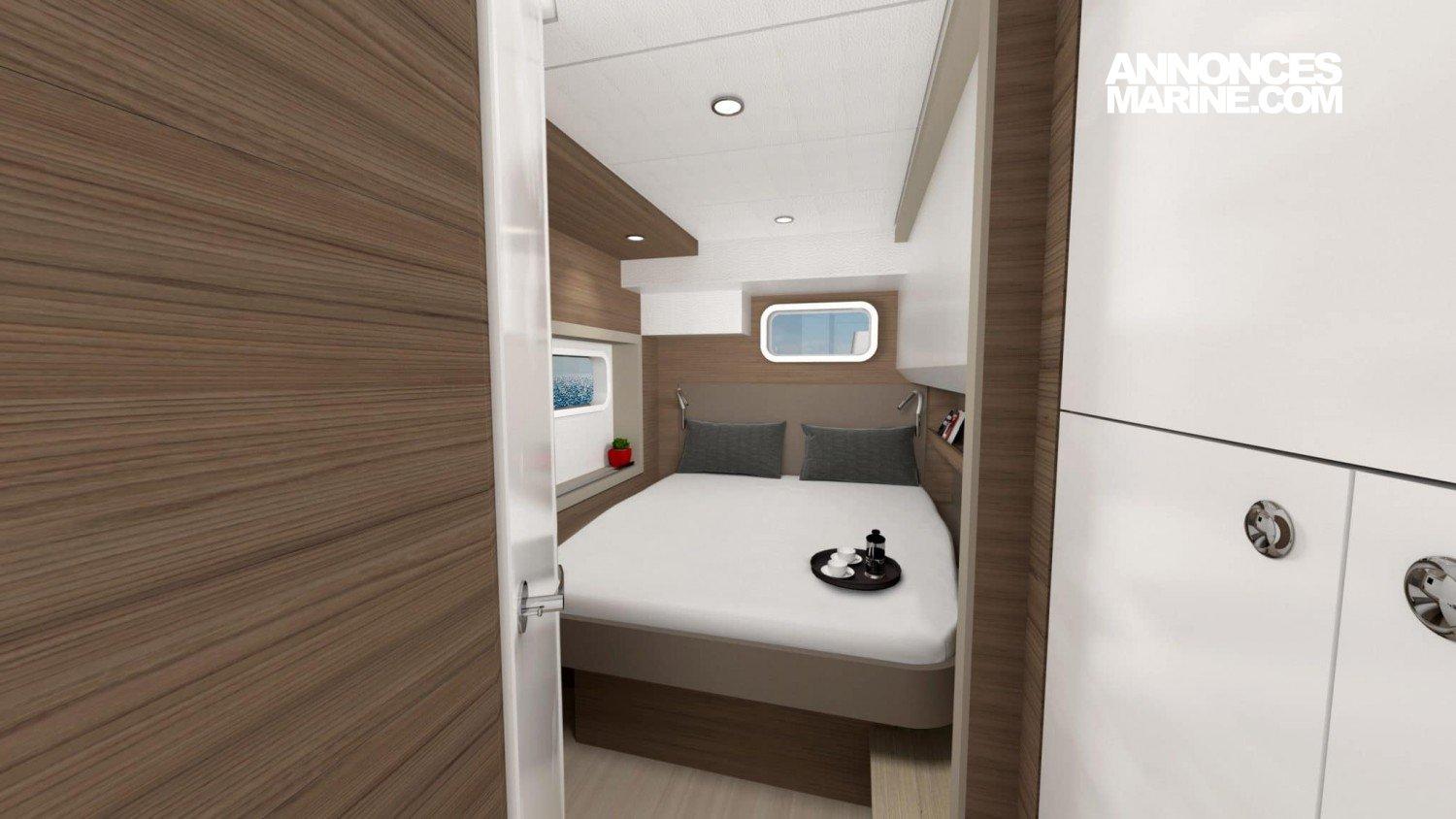 Fort des concepts innovants de la marque (grand cockpit avant, porte arrière oscillo-basculante entre autres) Il sera également équipé, comme pour le 4.8 et le 5.4, d’une porte qui permet de passer du carré vers le cockpit avant, répondant ainsi aux attentes de nos clients.BALI 4.4 EQUIPE DE DEUX MOTEURS YANMAR 45CV