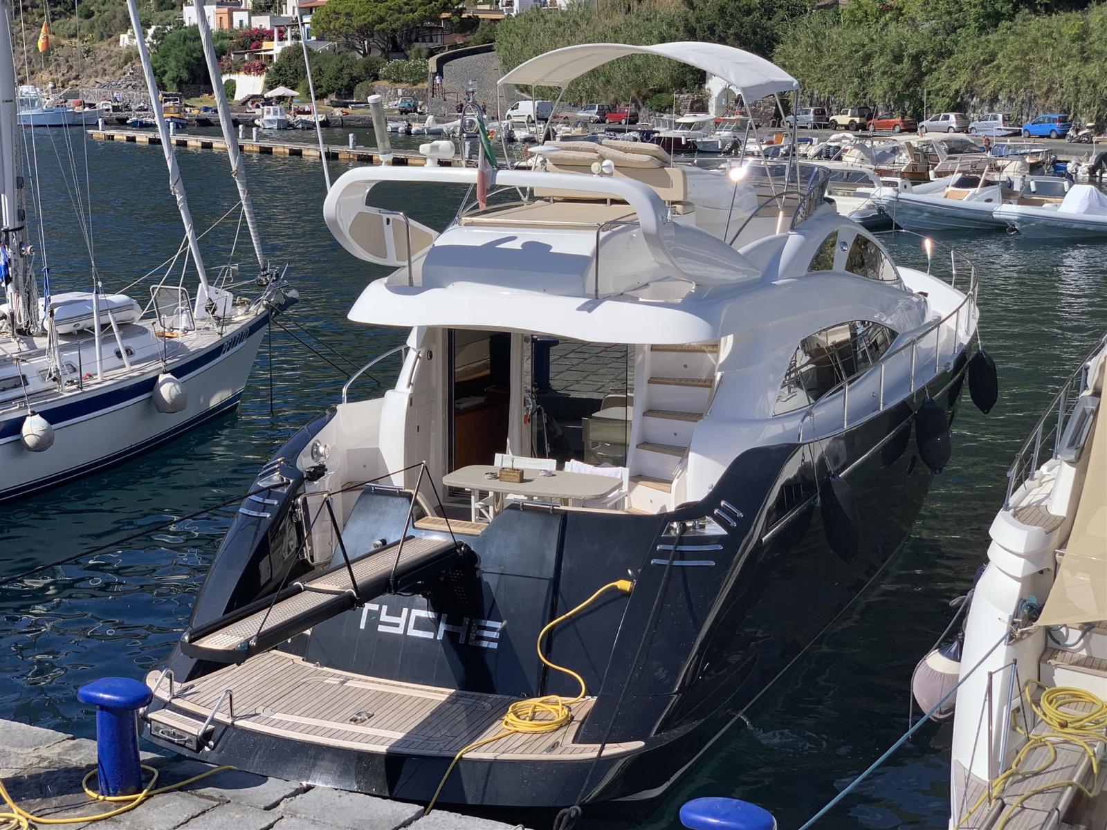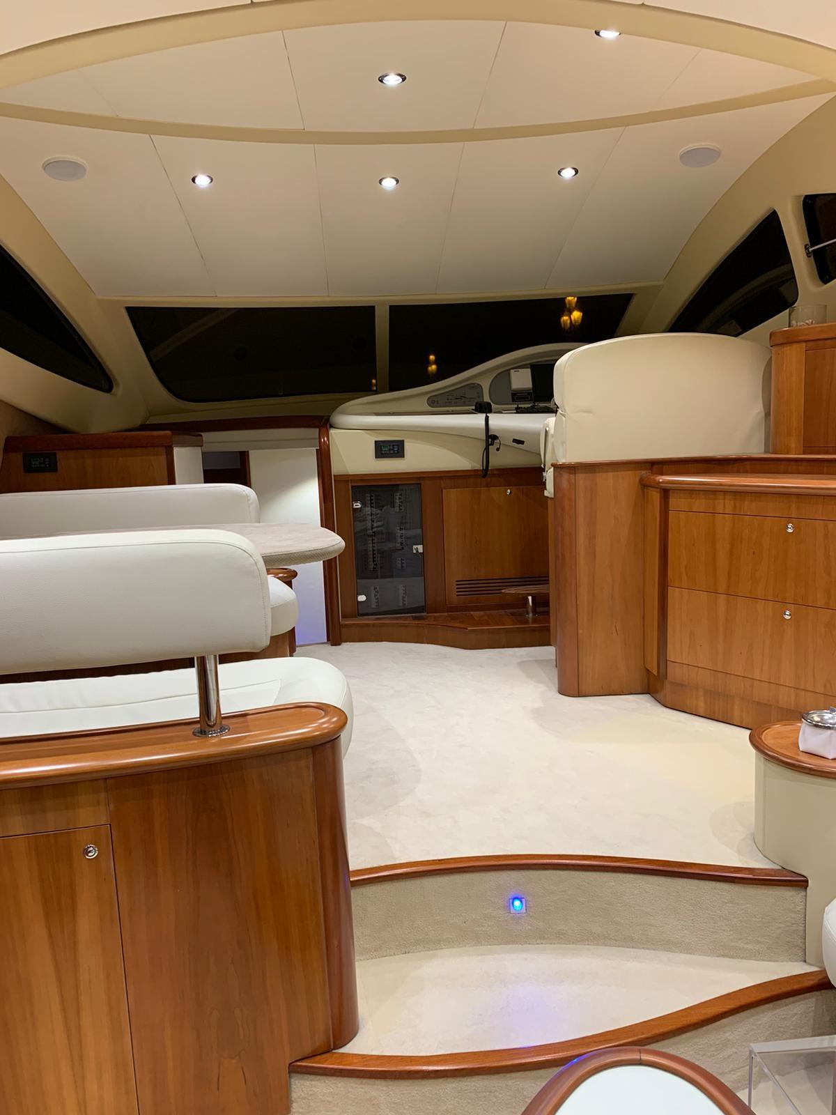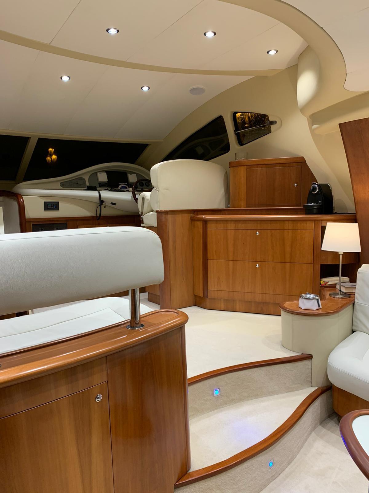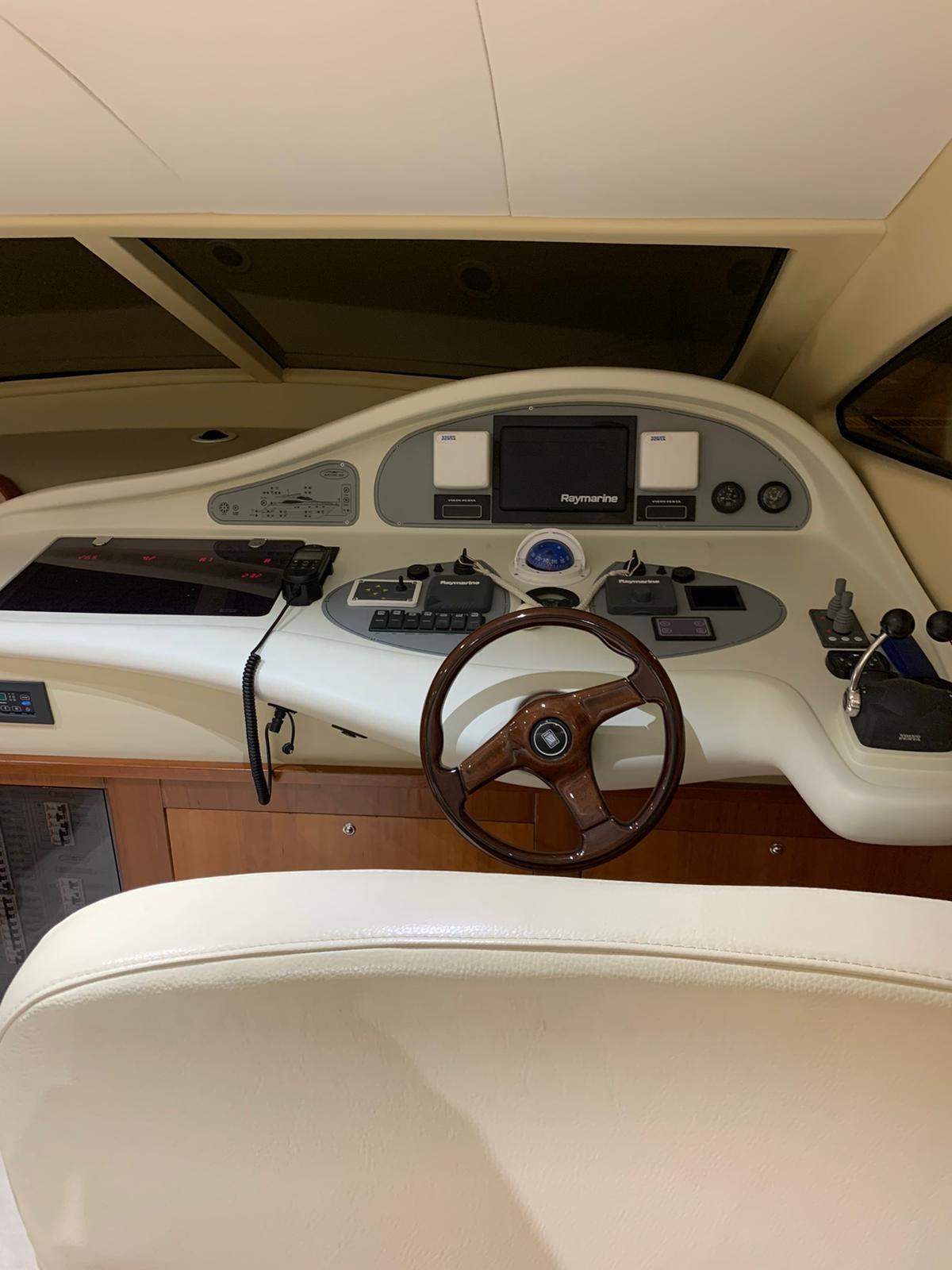 Alarme moteur, Eau sous pression, Douche de cockpit, Double barre à roue, Flaps hydrauliques, Éclairage de courtoisie, Spots sous-marins, Passerelle (Idraulica Besenzoni), Plateforme arrière (Teak), Pompe de cale manuelle, Cockpit en teck, Prise de quai, Onduleur, Guindeau électrique, table de cockpit.