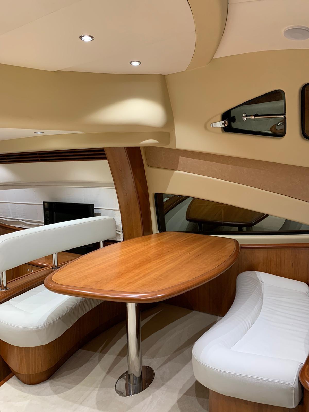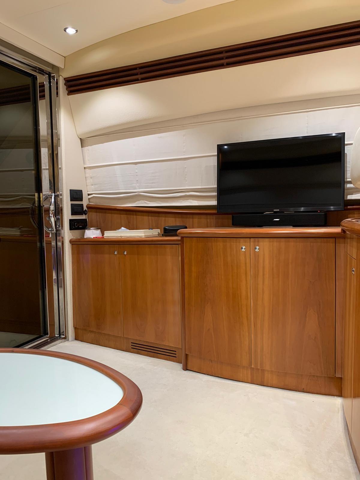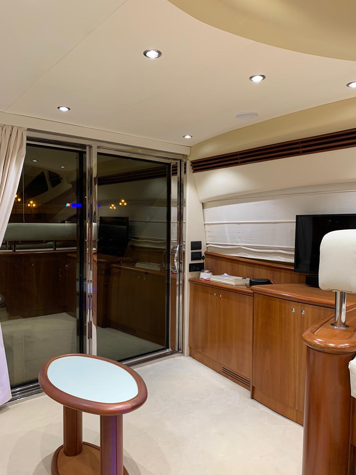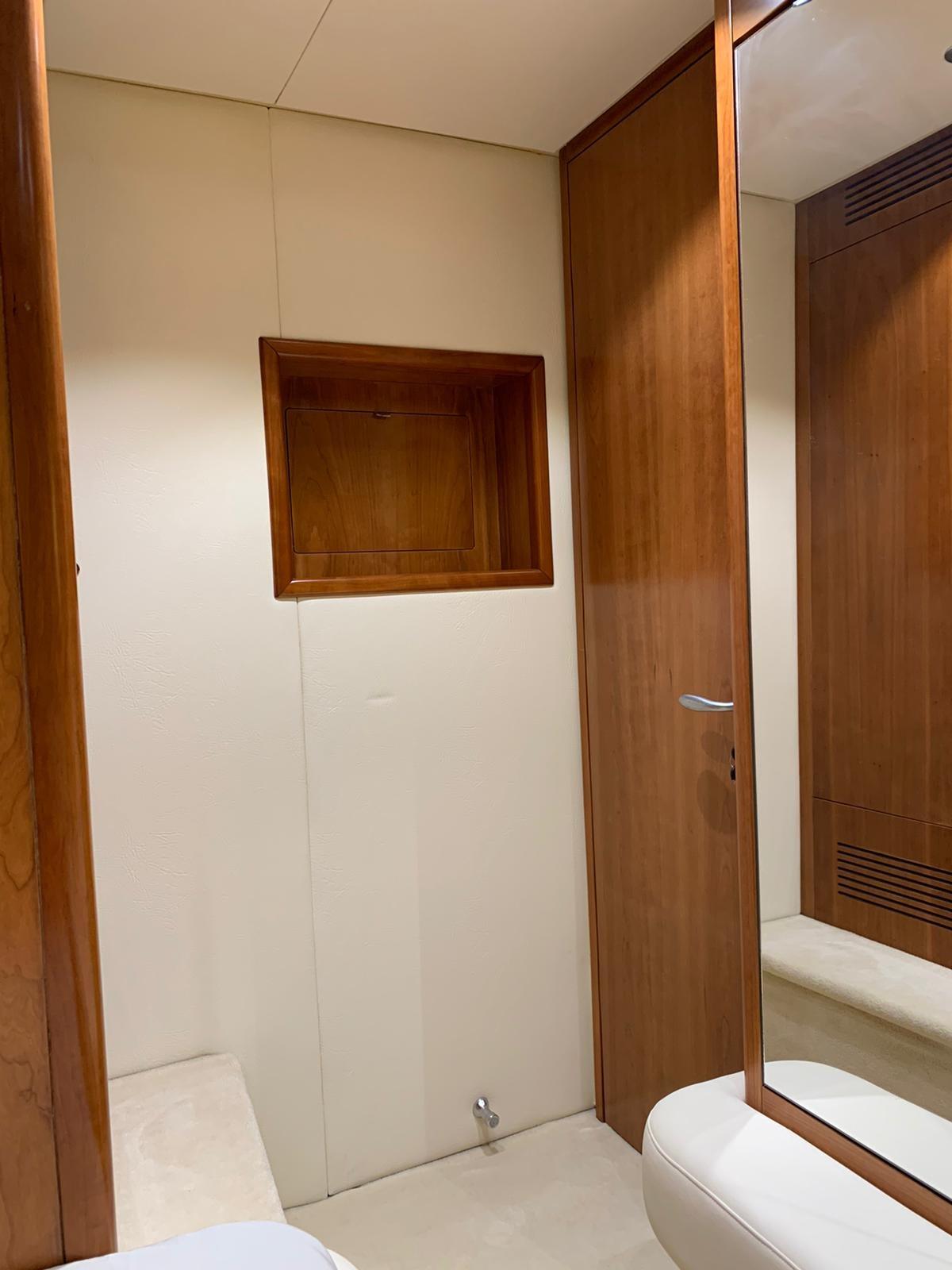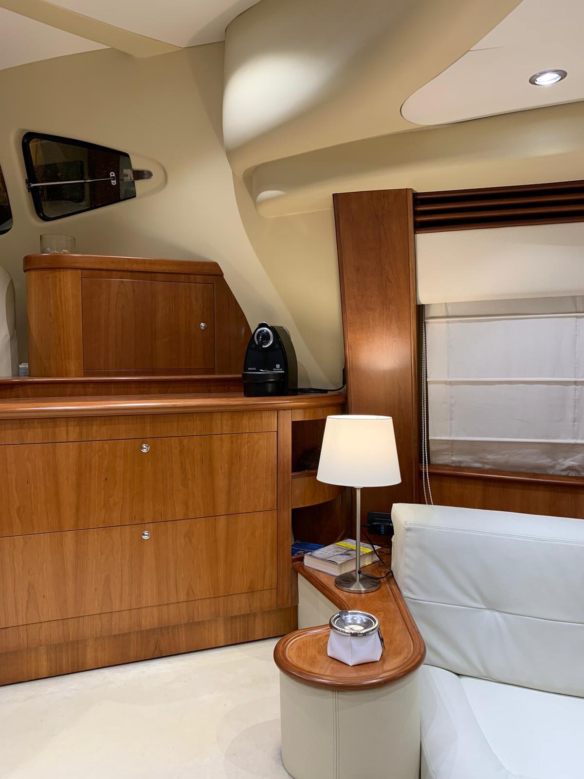 Alarme moteur, Eau sous pression, Douche de cockpit, Double barre à roue, Flaps hydrauliques, Éclairage de courtoisie, Spots sous-marins, Passerelle (Idraulica Besenzoni), Plateforme arrière (Teak), Pompe de cale manuelle, Cockpit en teck, Prise de quai, Onduleur, Guindeau électrique, table de cockpit.