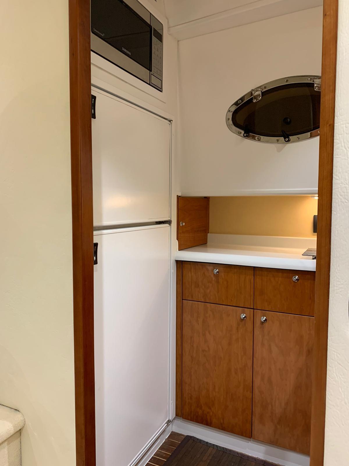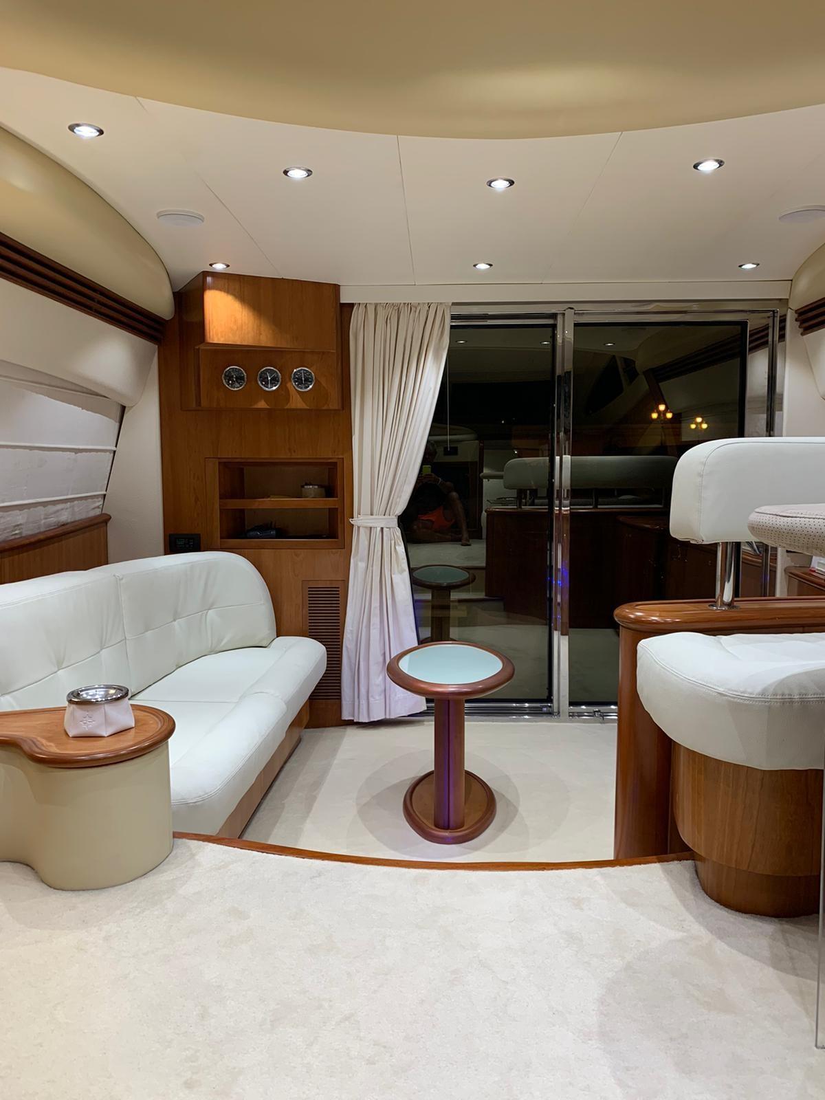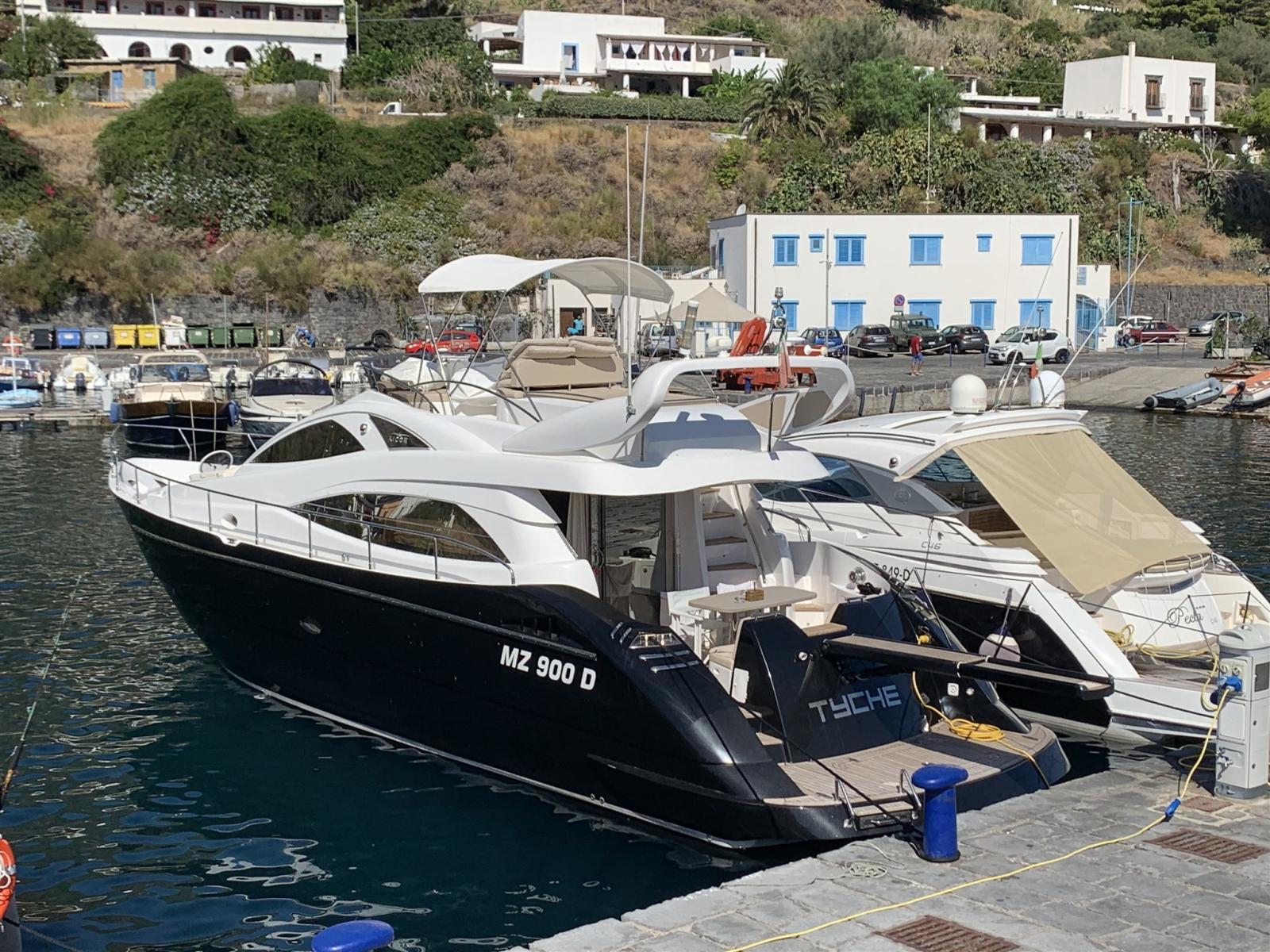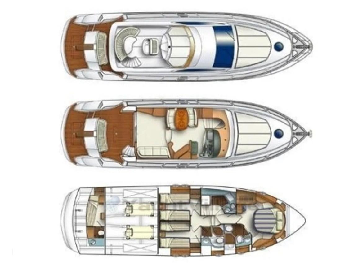 Alarme moteur, Eau sous pression, Douche de cockpit, Double barre à roue, Flaps hydrauliques, Éclairage de courtoisie, Spots sous-marins, Passerelle (Idraulica Besenzoni), Plateforme arrière (Teak), Pompe de cale manuelle, Cockpit en teck, Prise de quai, Onduleur, Guindeau électrique, table de cockpit.