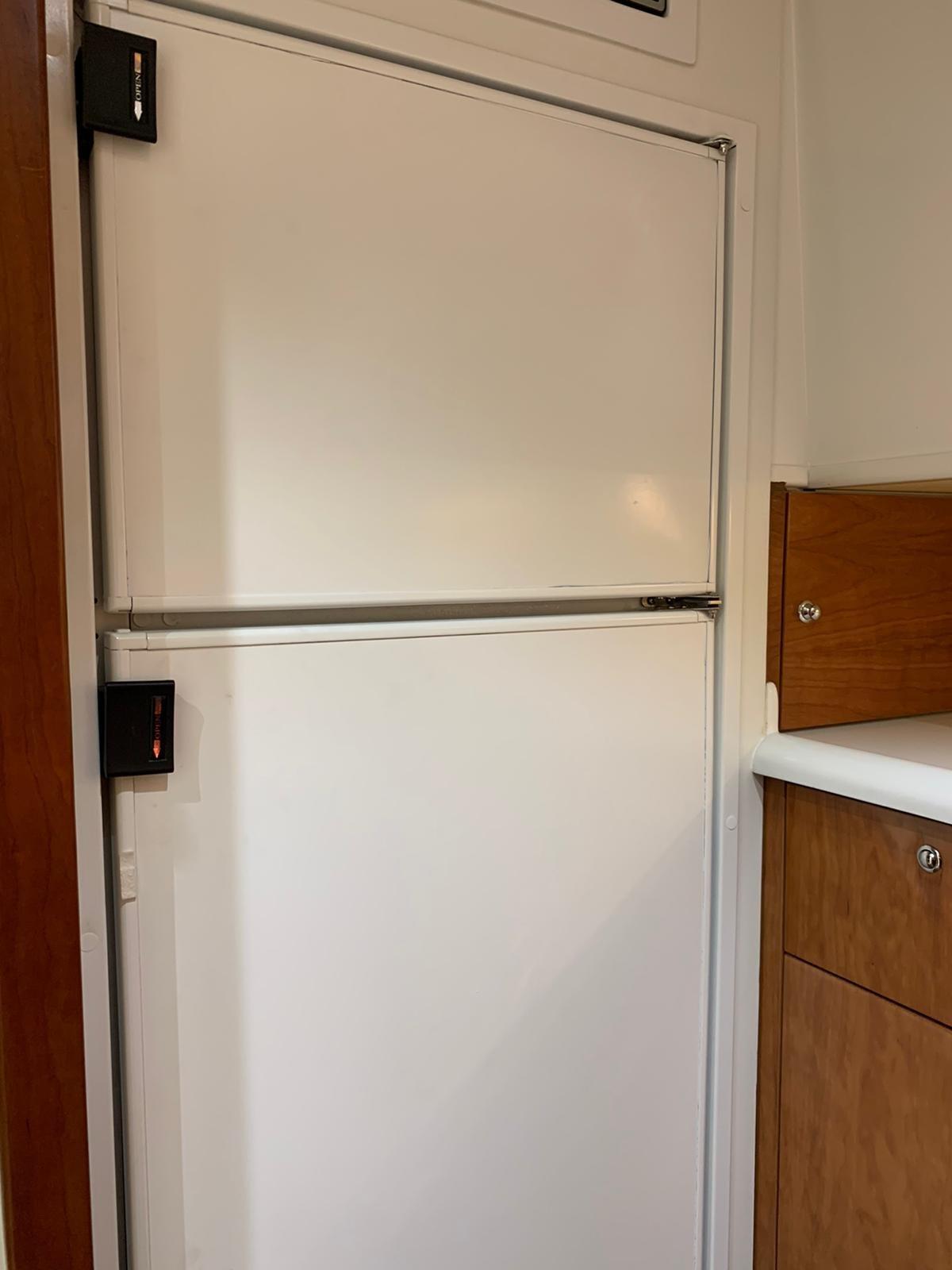 Ballon d'eau chaude, Cuve à eaux noires, Prises interieures 12v, Prises interieures 220v, Toilettes électriques.