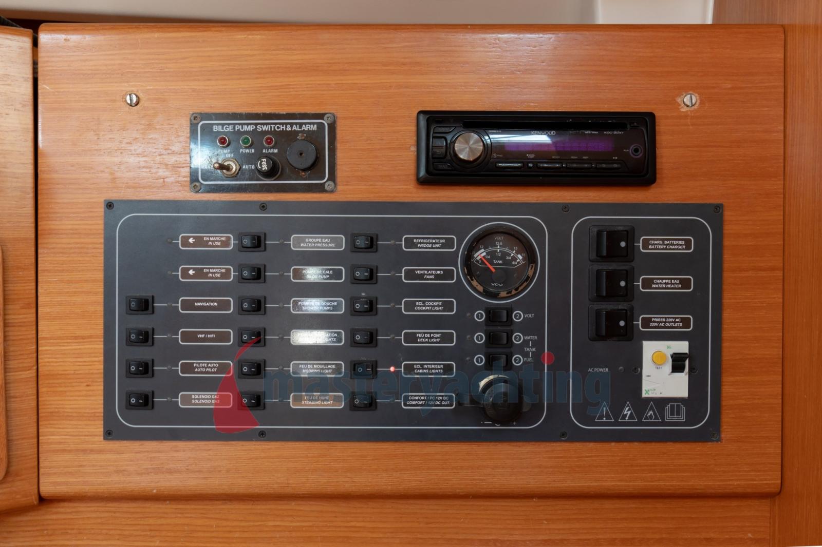 Alarme moteur, Ancre (Anchor winch electrical), Eau sous pression, Douche de cockpit, Plateforme arrière, Pompe de cale manuelle, Cockpit en teck, Onduleur, Guindeau électrique, Echelle de bain, Chaise support HB, table de cockpit.