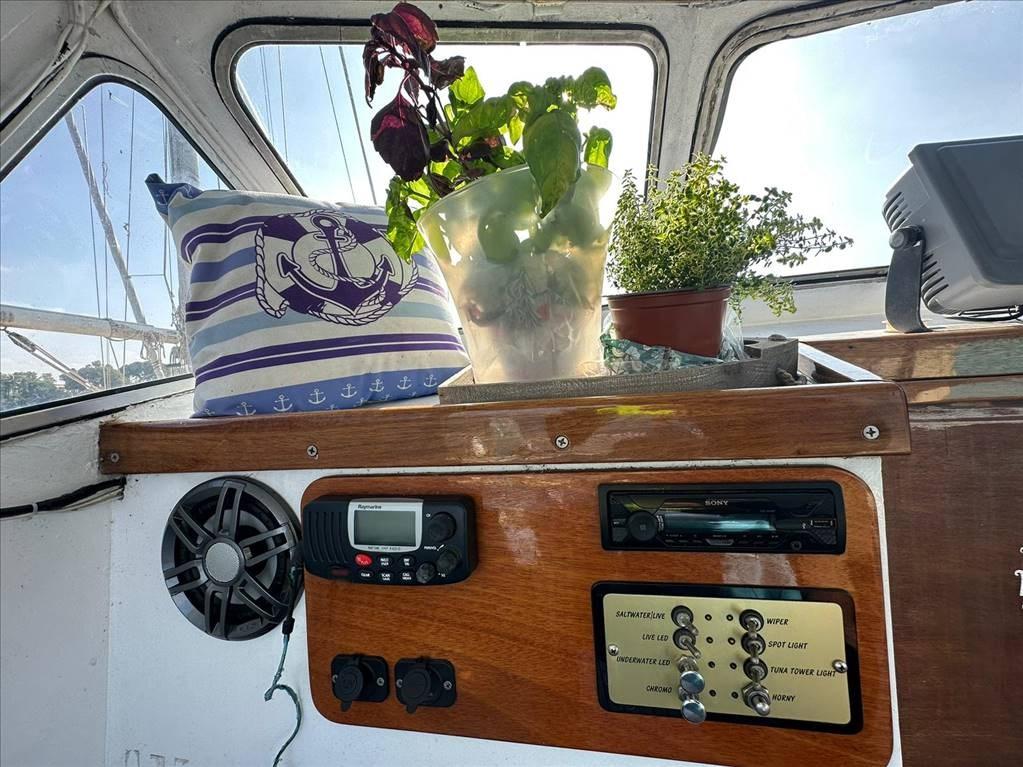 Échosondeur, gps, voiture pilote avec télécommande, Radar, vhf, panneau solaire 300W. Divergent 9 mètres,,6 porte-tonneau tubulaire,10 porte-tige encastré à l’arrière tout en acier anodisé de l’OCEAN. Prises pour bobines électriques.