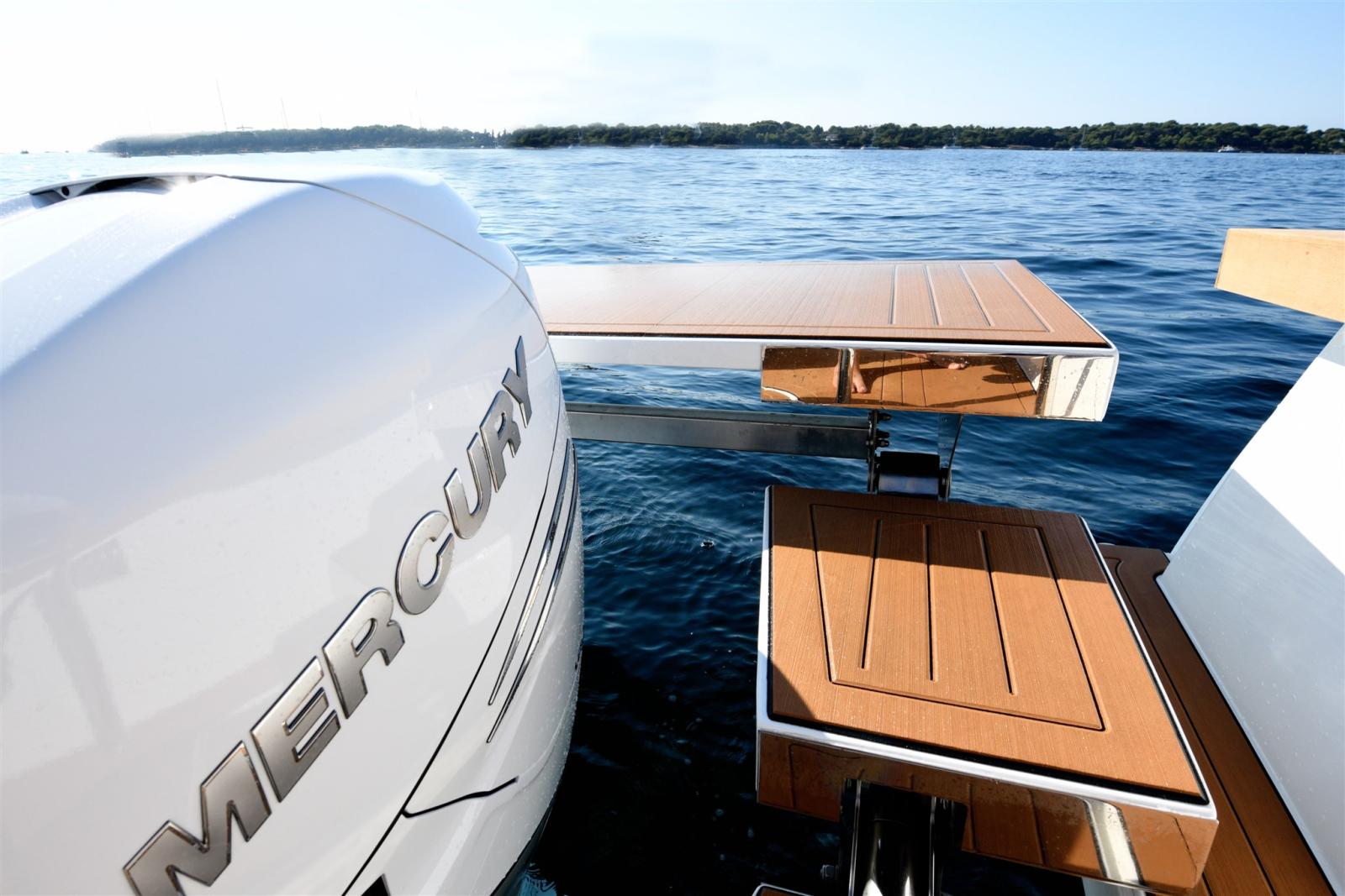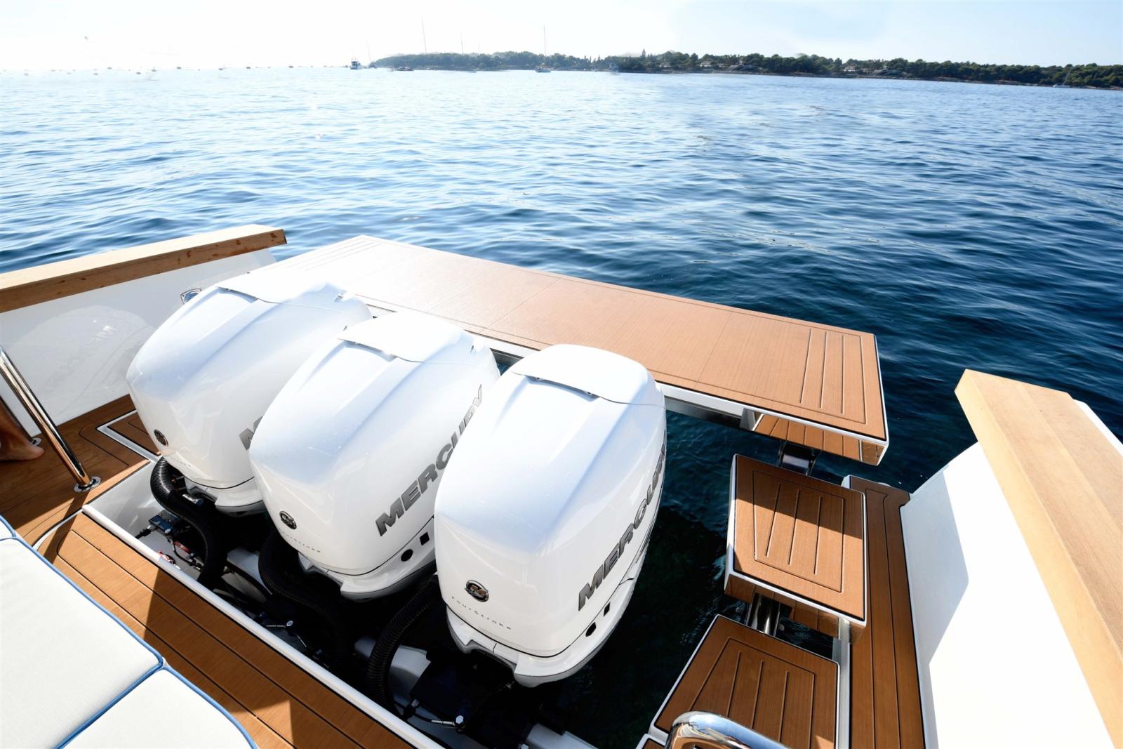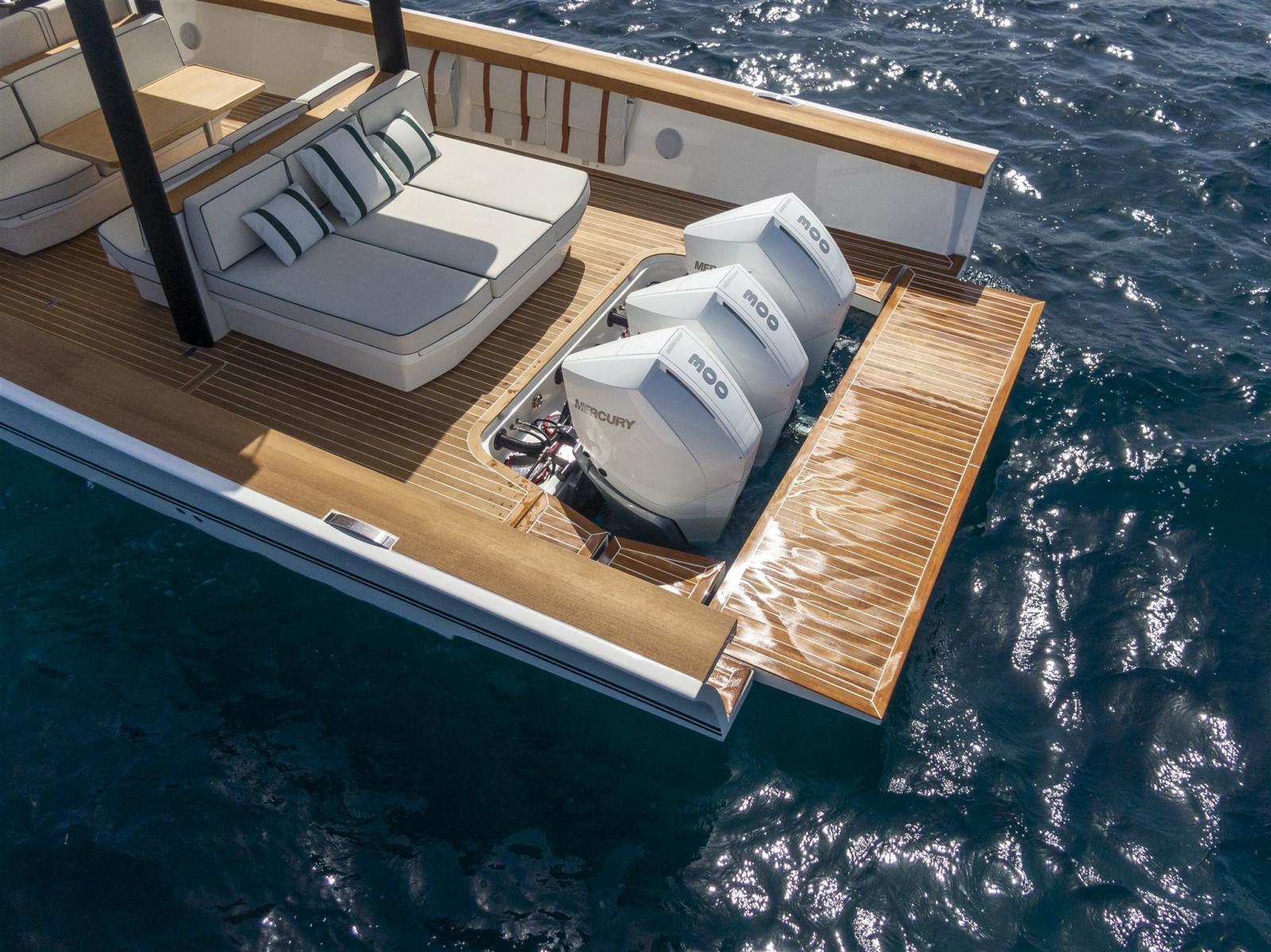 Avec les moteurs Mercury Verado V8 et V10, le Swan Shadow offre des performances extraordinaires, atteignant des vitesses de pointe allant jusqu’à 50 nœuds. La coque en V profond jumelée assure une stabilité et une maniabilité sans compromis, offrant une expérience de conduite inégalée.