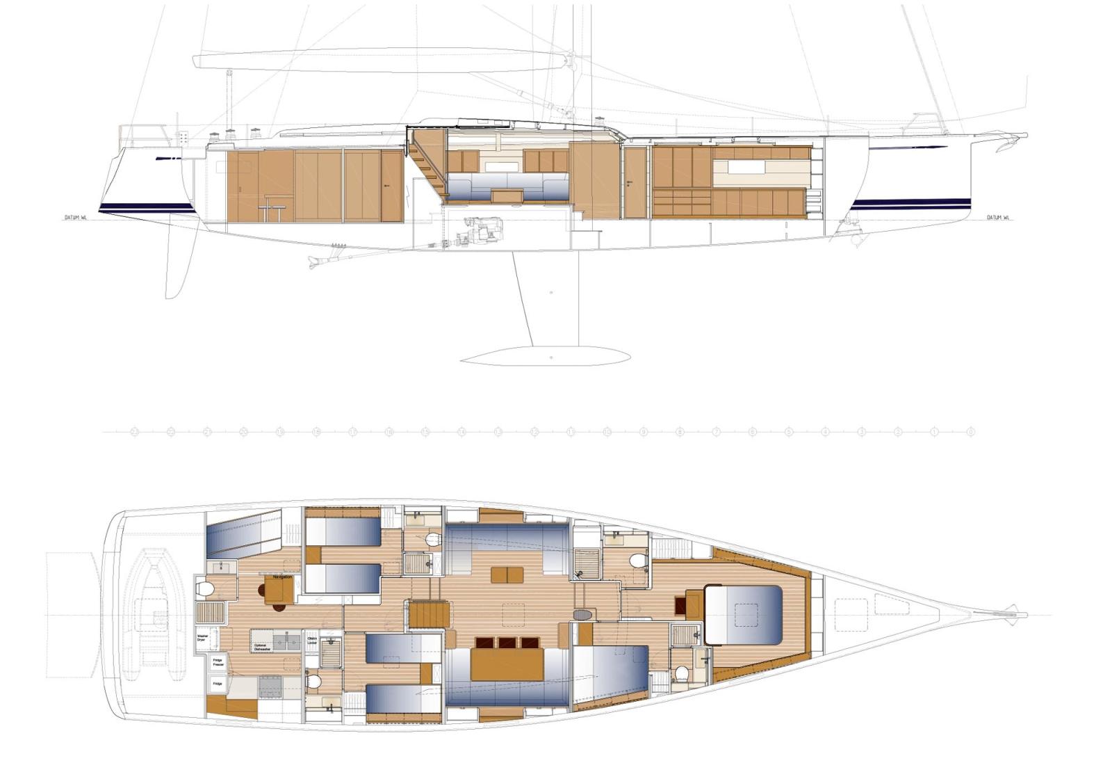 Tout le savoir-faire et l’expérience de Nautor en matière de voiliers de course et de croisière ont été incorporés dans ce nouveau Swan 78 hauturier, descendant direct des modèles originaux Swan 80 et 82 du passé. Légèrement plus court, mais plus large et plus puissant, le nouveau Swan 78 présente des lignes de coque modernes, notamment une large poupe au-dessus de la ligne de flottaison, deux gouvernails et une quille orientée vers la course. Le pont, avec son design moderne et ses solutions simples pour gérer les voiles et la vie en mer, offre une apparence d’ordre et d’efficacité.