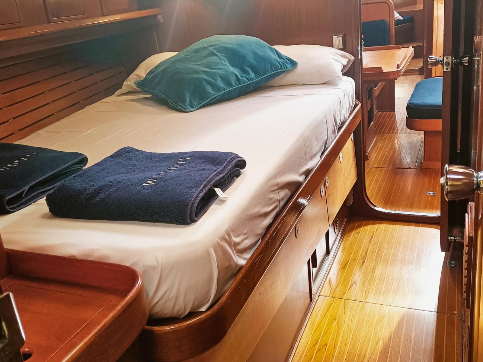 Le pont en teck a été remplacé en 2019, ajoutant une touche d’élégance au bateau.
