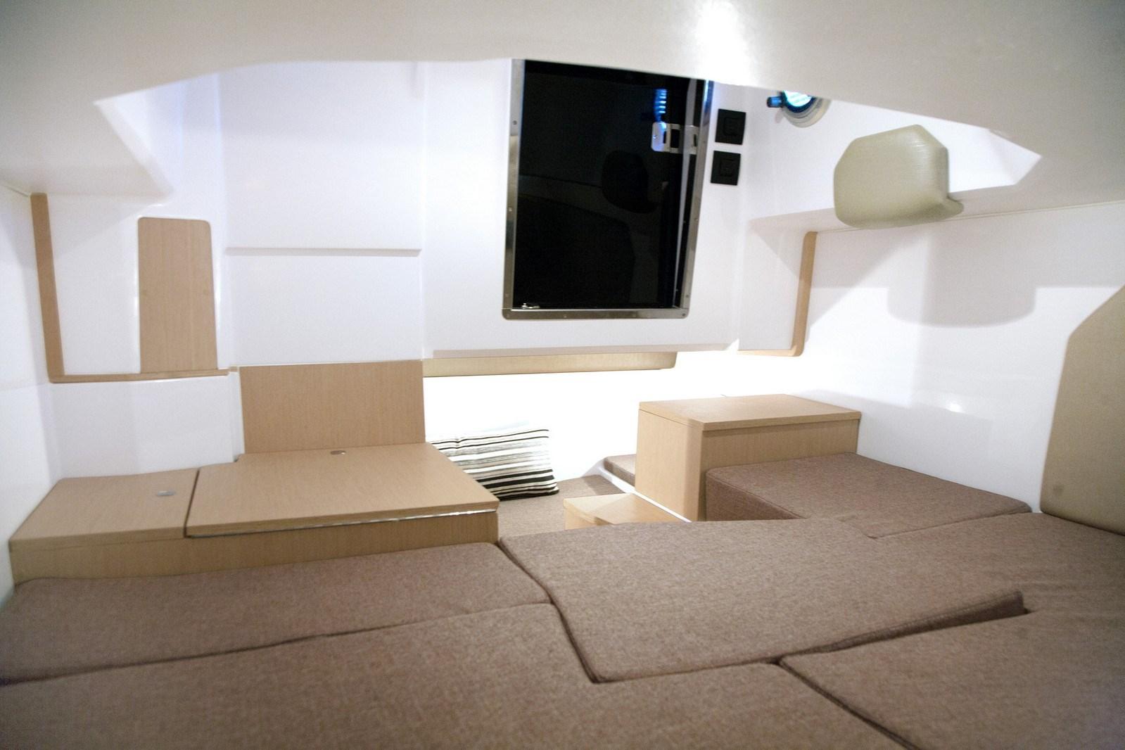 Un bain de soleil bimoteur, le seul de sa catégorie à disposer de trois couchettes confortables, dont l’aménagement intérieur a été totalement repensé par rapport aux versions précédentes, assurant une excellente habitabilité et optimisant les espaces extérieurs.