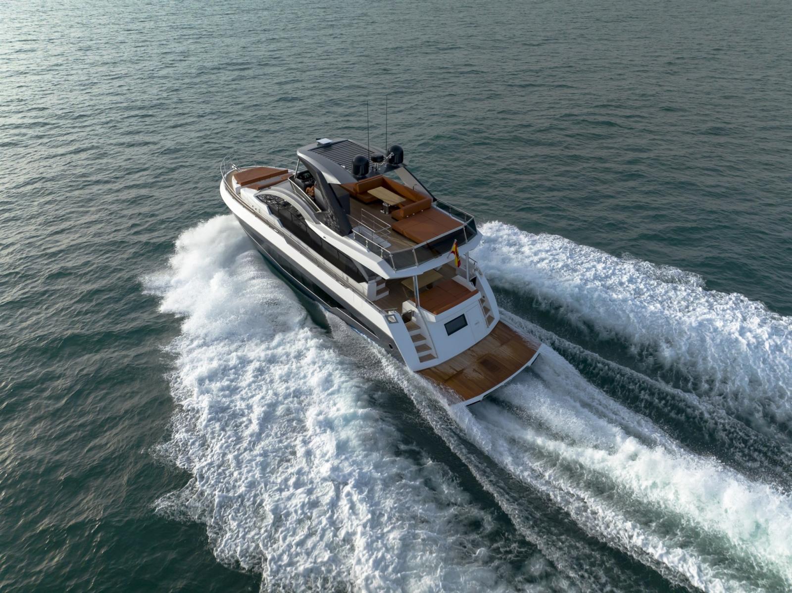 Astondoa 66 Fly est un bateau à l’âme sportive dans lequel l’exploitation de l’espace extérieur et intérieur est maximisée. Le flybridge spacieux et les quatre cabines assurent de l’espace et un haut niveau de confort à tous les invités.