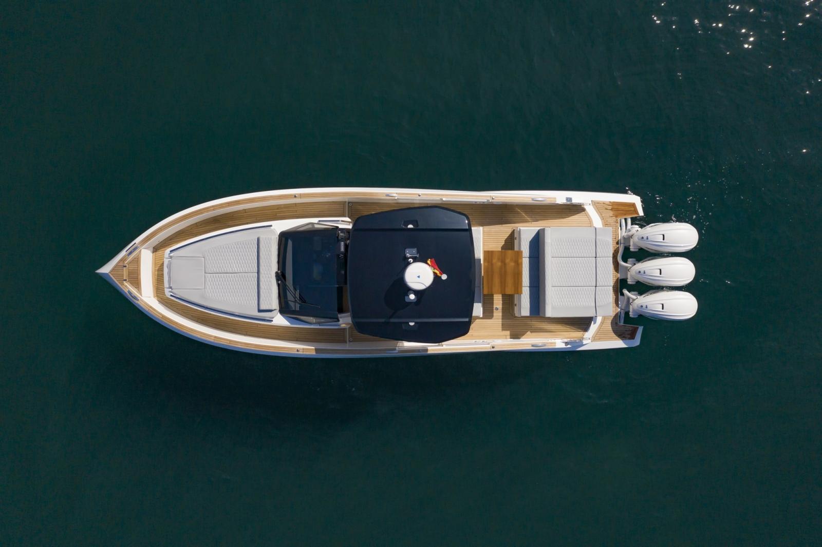 Le hors-bord Astondoa 377 Coupé se caractérise par un design épuré et aérodynamique, son étrave inversée donne de la substance, de la force et de la stabilité au bateau.