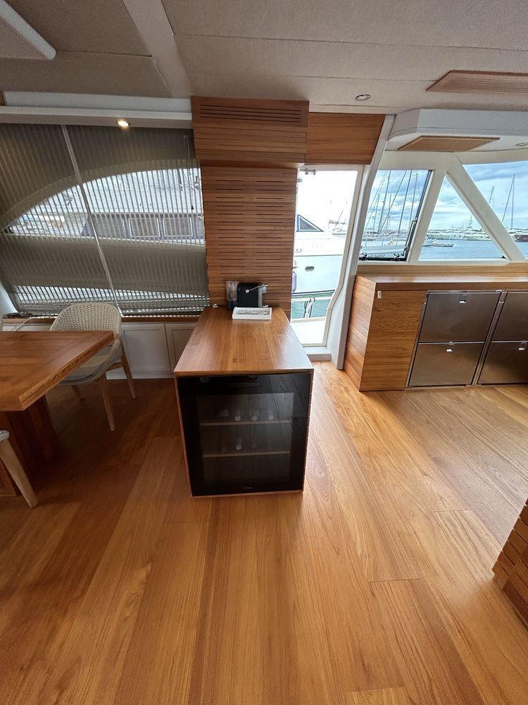 - Refait le cockpit teck, passerelles latérales, flybridge, plateforme arrière 2022