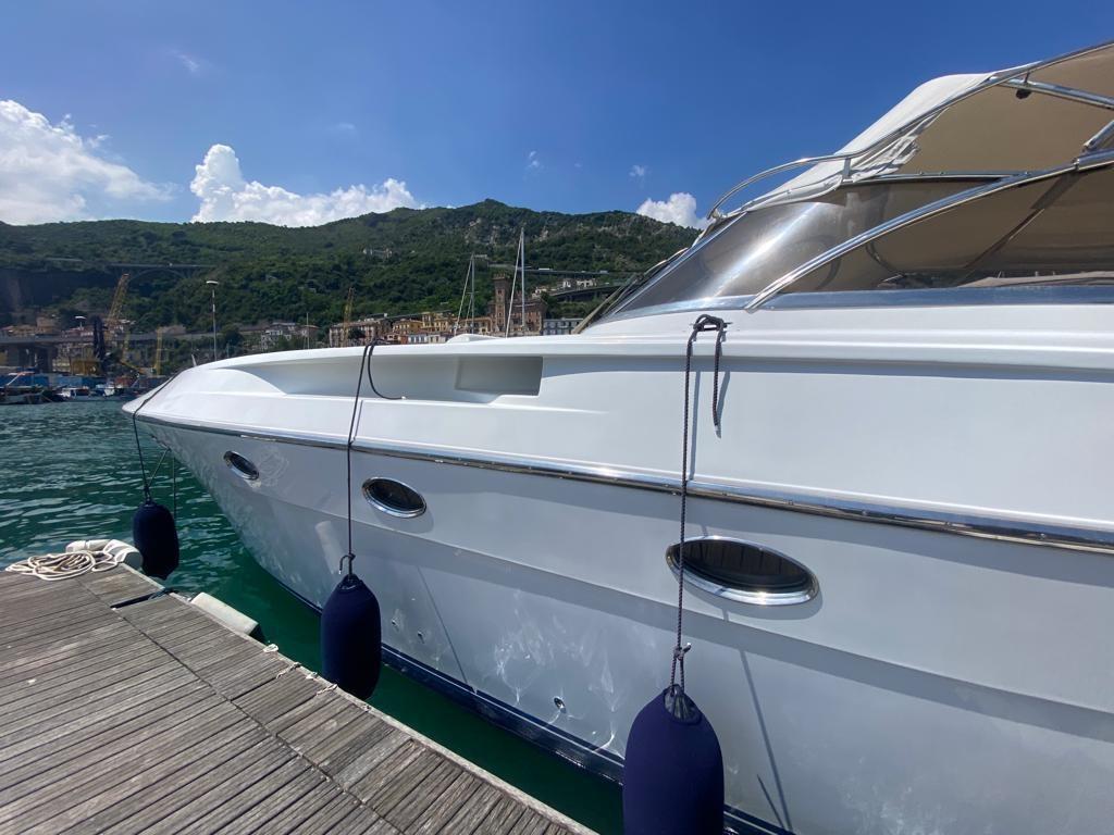 Alarme gaz, Alarme moteur, Alarme de pompe de cale, Eau sous pression, Batteries (cambio 2021), Chargeur de batterie (Quick 12V60A (2023)), Douche de cockpit (Ad incasso), Propulseur d'étrave ((Vetus)), Flaps hydrauliques, Extincteur(s) fixe(s) (Bombola 20 kg, revisione 2025), Éclairage de courtoisie, Passerelle ((Pin craft con modifica di rialzo verticale), Pompe de cale automatique, Cockpit en teck, Prise de quai, Onduleur, Guindeau électrique (sostituzione motore 2023), Echelle de bain (Inox artigianale con tientibene ribaltabile), Selles pour Annexe, Annexe (motore fuoribordo Mercury), Corne.