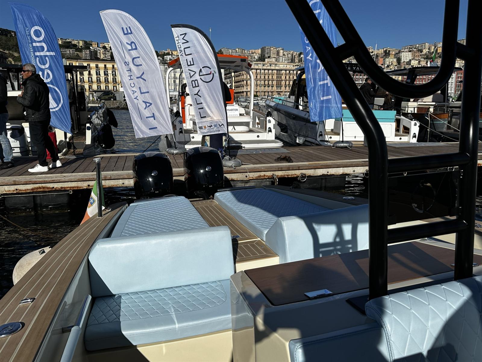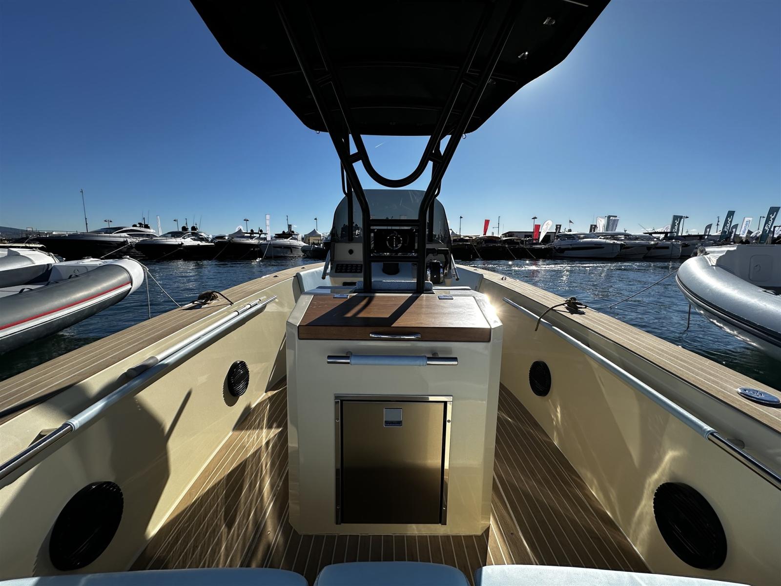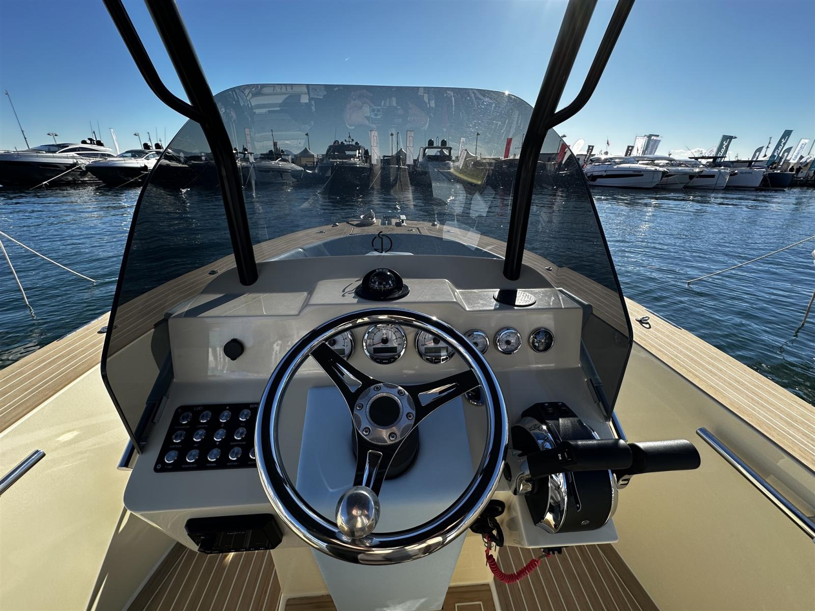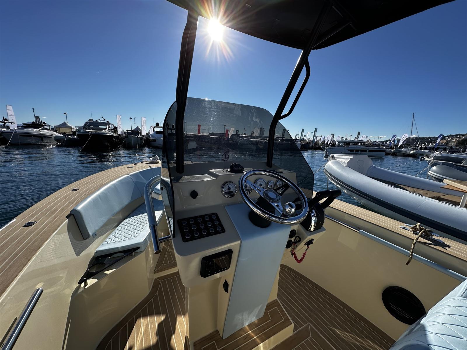 Alarme moteur, Eau sous pression, 2 Batteries (100 AH), 6 Taquets pliants (Seasmart), Douche de cockpit, Extincteur(s) fixe(s), Cockpit en teck (Flexiteek fuga bianca), Guindeau électrique (Quick 500w), T-Top.