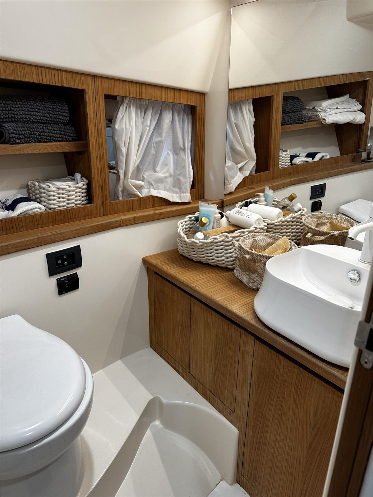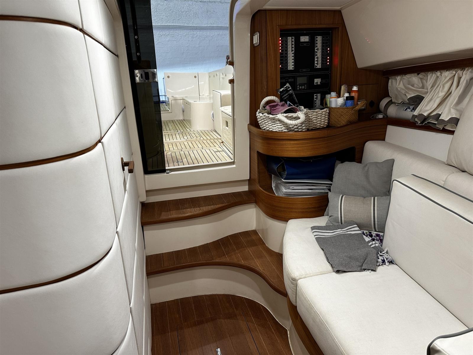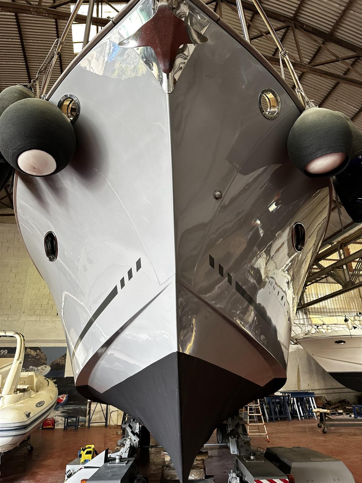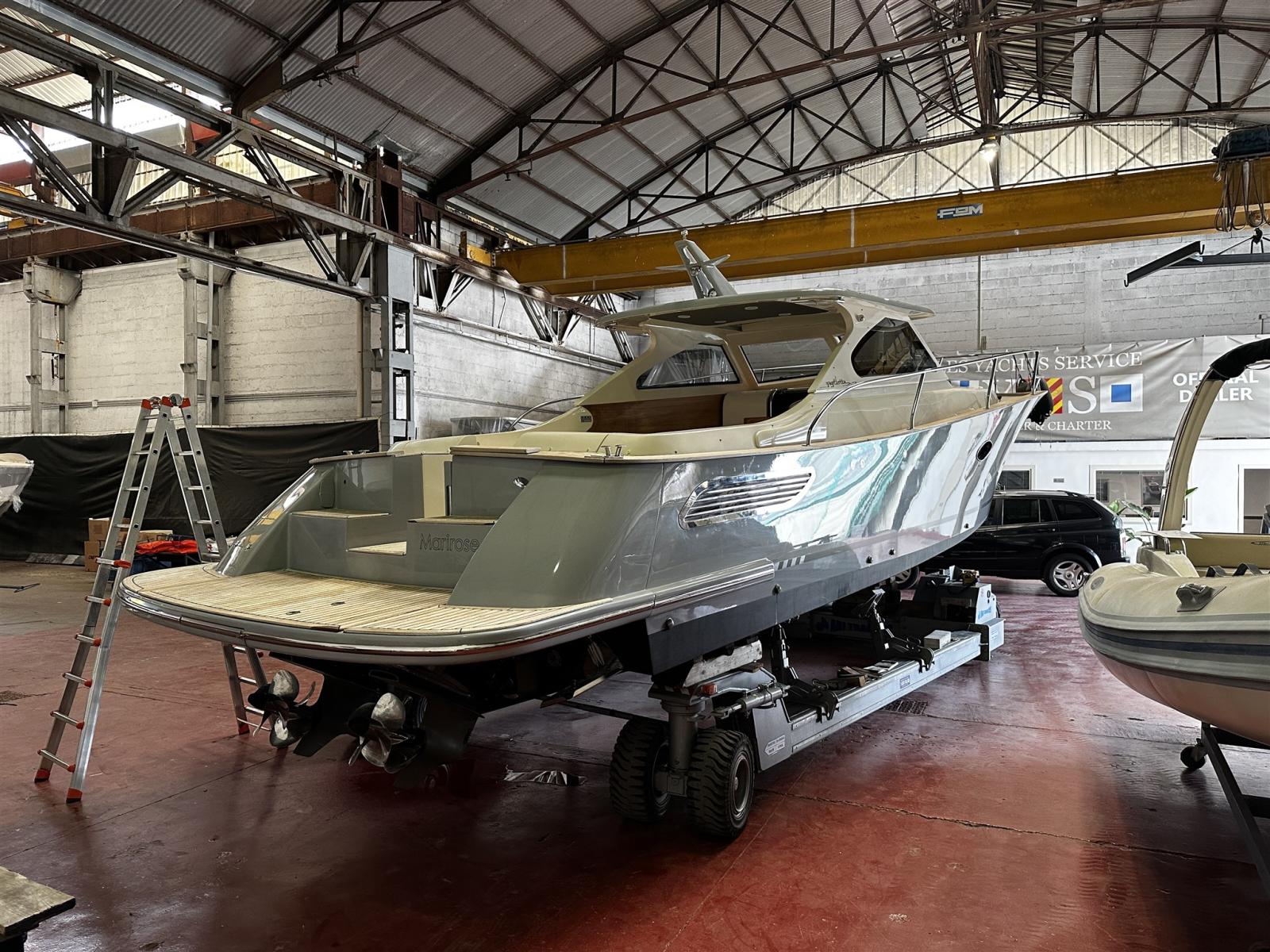 Alarme moteur, Alarme de pompe de cale, Ouverture du compartiment moteur électrique (Sala macchine poppa), Eau sous pression, Passavant en teck (fino a ponte di prua), Douche de cockpit, Flaps hydrauliques, Hard top, Extincteur(s) fixe(s), Indicateurs de flaps, Lavabo dans le cockpit, Éclairage de courtoisie, Passerelle (Besenzoni bianca a scomparsa), Pompe de cale automatique, Cockpit en teck (Pozzetto completo), Prise de quai, Onduleur, Guindeau électrique, table de cockpit (Elettrico pozzetto di poppa).